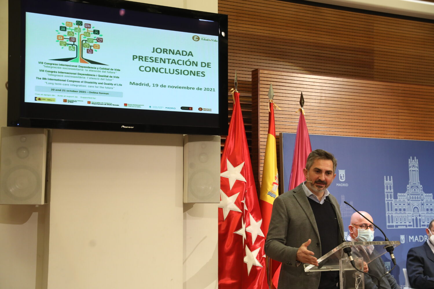 El delegado de Familias, Igualdad y Bienestar Social, Pepe Aniorte, ha defendido la importancia de la activación de políticas innovadoras y preventivas, así como la coordinación sociosanitaria como “prioridades absolutas” para apoyar a las personas mayores, durante su intervención en la jornada de clausura del VIII Congreso Internacional de Dependencia y Calidad de Vida organizada por la Fundación Edad&Vida y celebrada en el palacio de Cibeles.
