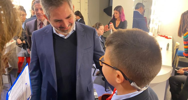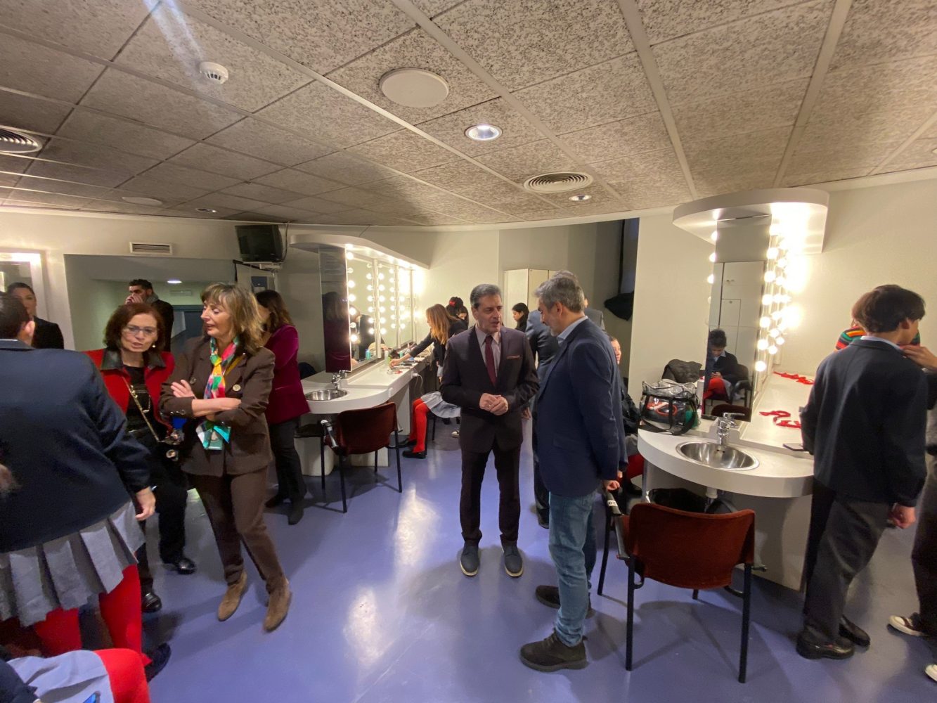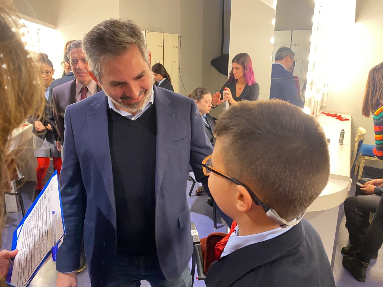 El delegado de Familias, Igualdad y Bienestar Social, Pepe Aniorte, ha visitado este jueves en el Teatro Real a los niños y niñas de la Residencia de San Ildefonso que cantarán a lo largo de la mañana de hoy los premios de la Lotería de Navidad para desearles suerte en su labor durante el sorteo.