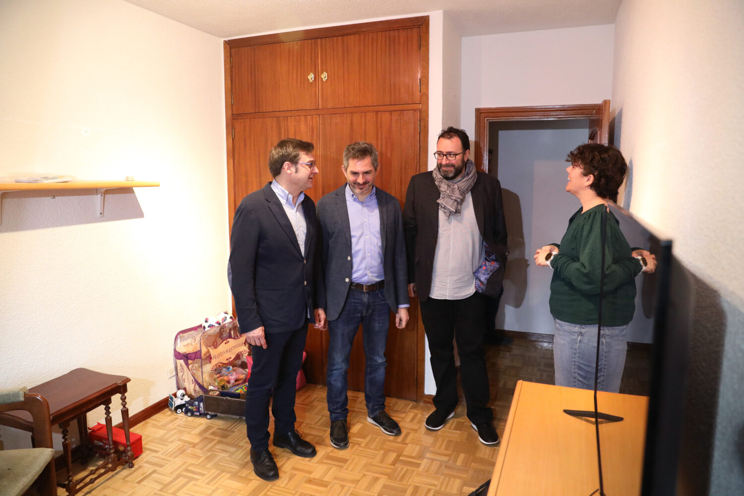 El delegado de Familias, Igualdad y Bienestar Social, Pepe Aniorte, junto con el concejal del distrito de Carabanchel, Álvaro González, ha visitado uno de los pisos destinados al alojamiento alternativo para familias con precariedad económica y en situación de exclusión socio-residencial.