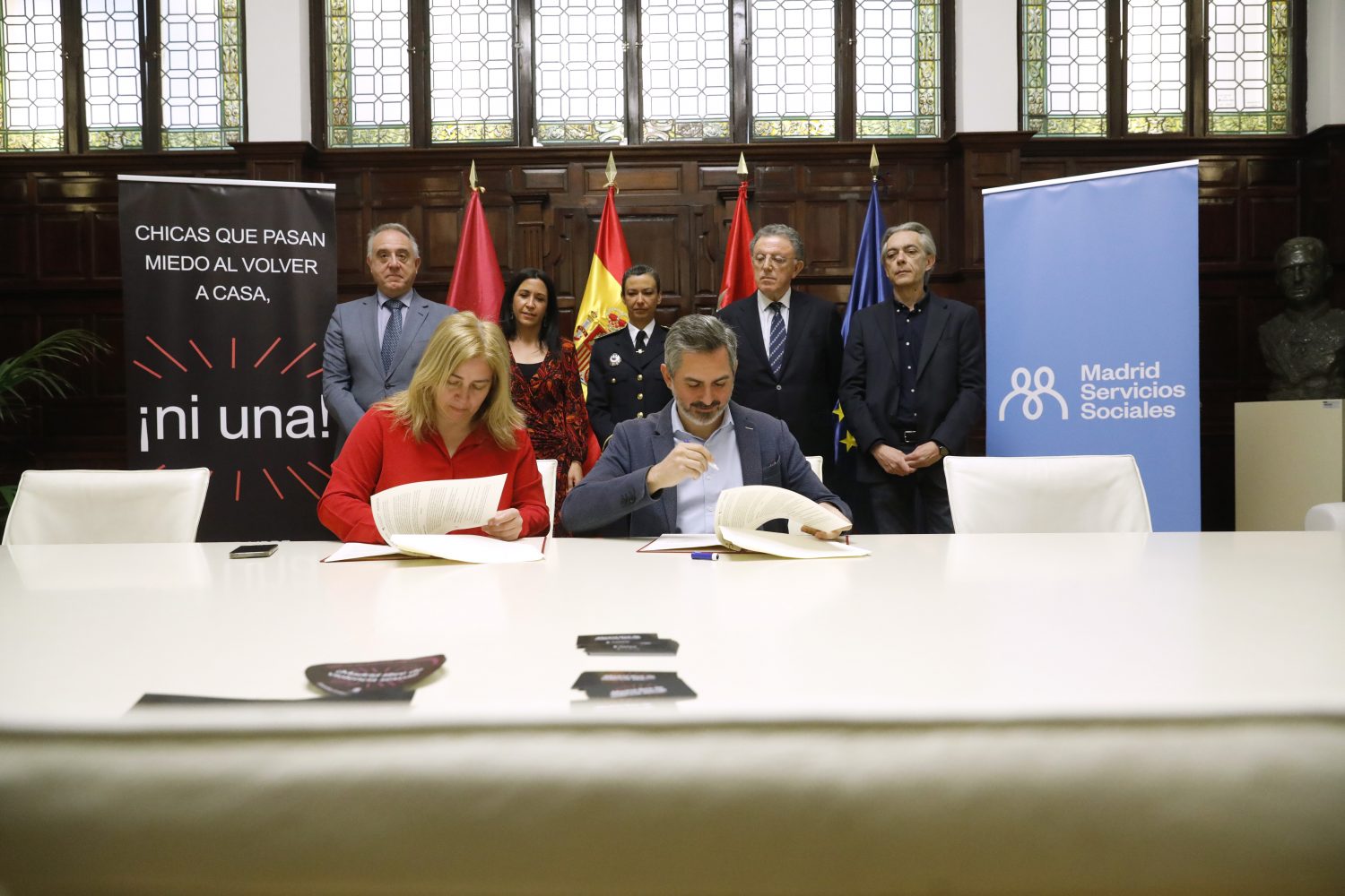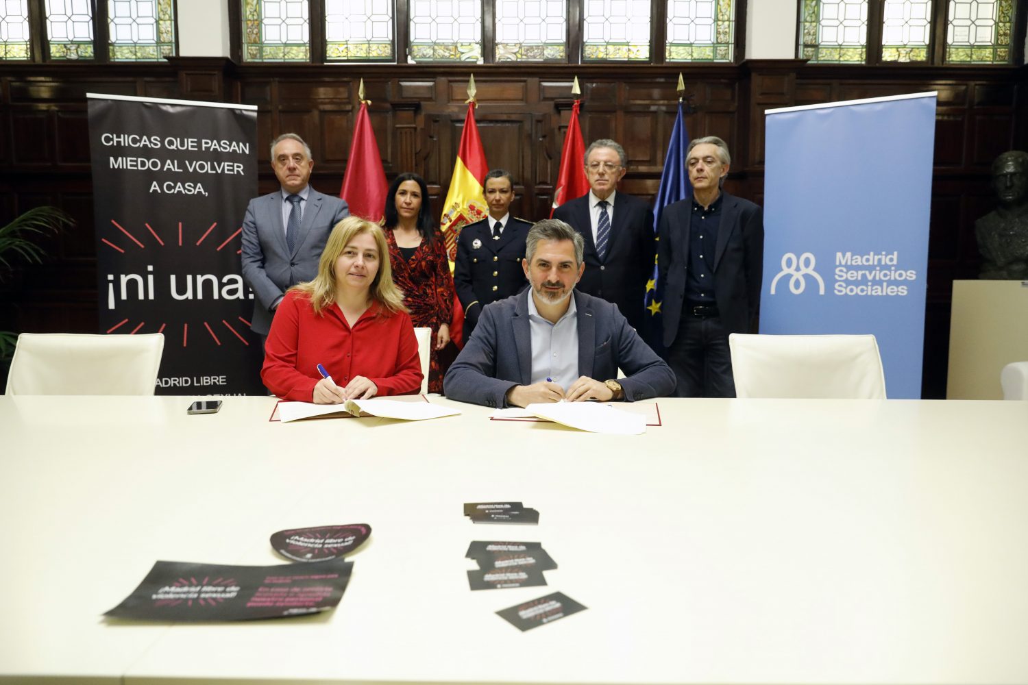 La delegada de Seguridad y Emergencias y Portavoz municipal, Inmaculada Sanz, y el delegado de Familias, Igualdad y Bienestar Social, Pepe Aniorte, han firmado esta mañana, acompañados por representantes de las asociaciones Noche Madrid y Madrid en Vivo, un convenio para prevenir la violencia sexual en los locales de ocio nocturno. Con esta medida, el Consistorio avanza en la lucha con este tipo de violencia mediante la unión de los establecimientos de este ámbito hostelero y los recursos municipales tanto de la Dirección General de Políticas de Igualdad para la atención a las víctimas de violencia de género como los de la Policía Municipal.
