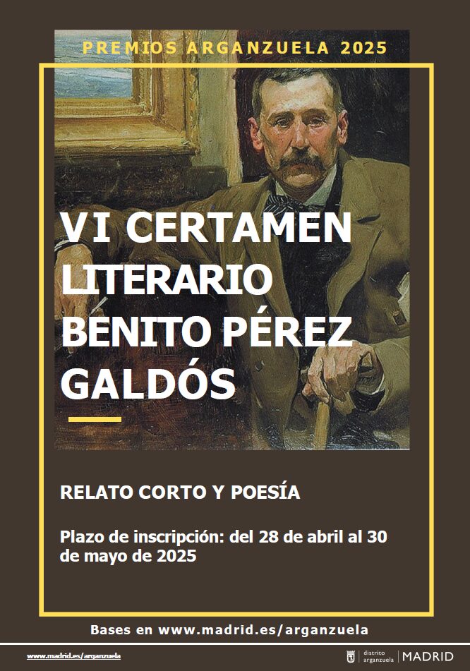El distrito de Arganzuela convoca la sexta edición del Certamen Literario Benito Pérez Galdós, una iniciativa que busca incentivar la creación literaria, generar una plataforma de promoción para los escritores del distrito y rendir homenaje a Benito Pérez Galdós, escritor íntimamente ligado a la ciudad de Madrid.