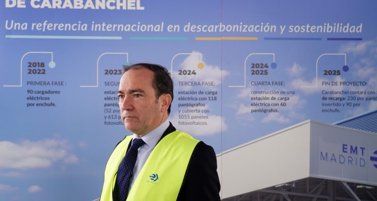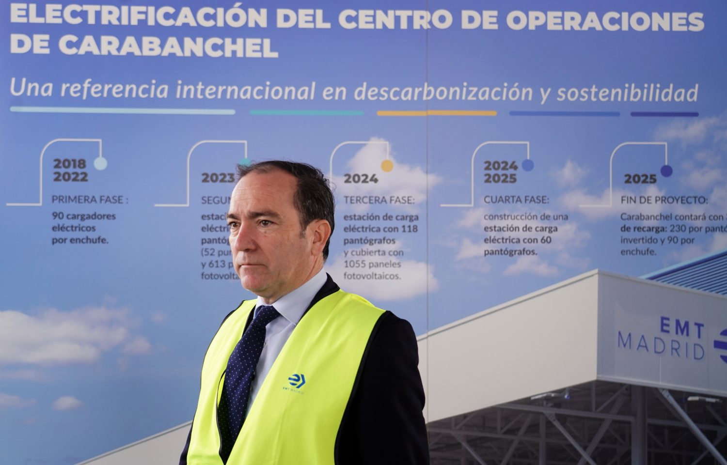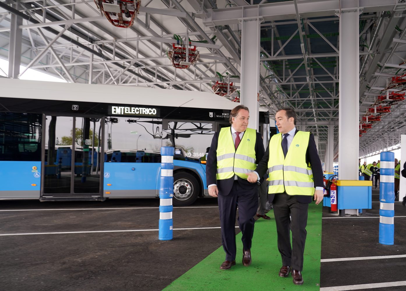 El delegado de Urbanismo, Medio ambiente y Movilidad, Borja Carabante, y el director gerente de la Empresa Municipal de Transportes de Madrid (EMT Madrid), Alfonso Sánchez, han visitado hoy la nueva estación de carga eléctrica por pantógrafo invertido en el centro de operaciones de Carabanchel. En su compromiso con la descarbonización del transporte público de viajeros y, en concreto, con la electrificación, EMT Madrid da un paso significativo con la puesta en marcha de esta estación de carga eléctrica que permite abastecer a 118 autobuses. Gracias a esta inauguración, el centro de operaciones alcanza ya un total de 260 puntos de recarga eléctrica. En este sentido, el delegado ha señalado que “esta infraestructura supone la confirmación del centro de operaciones como una referencia internacional en electrificación”.