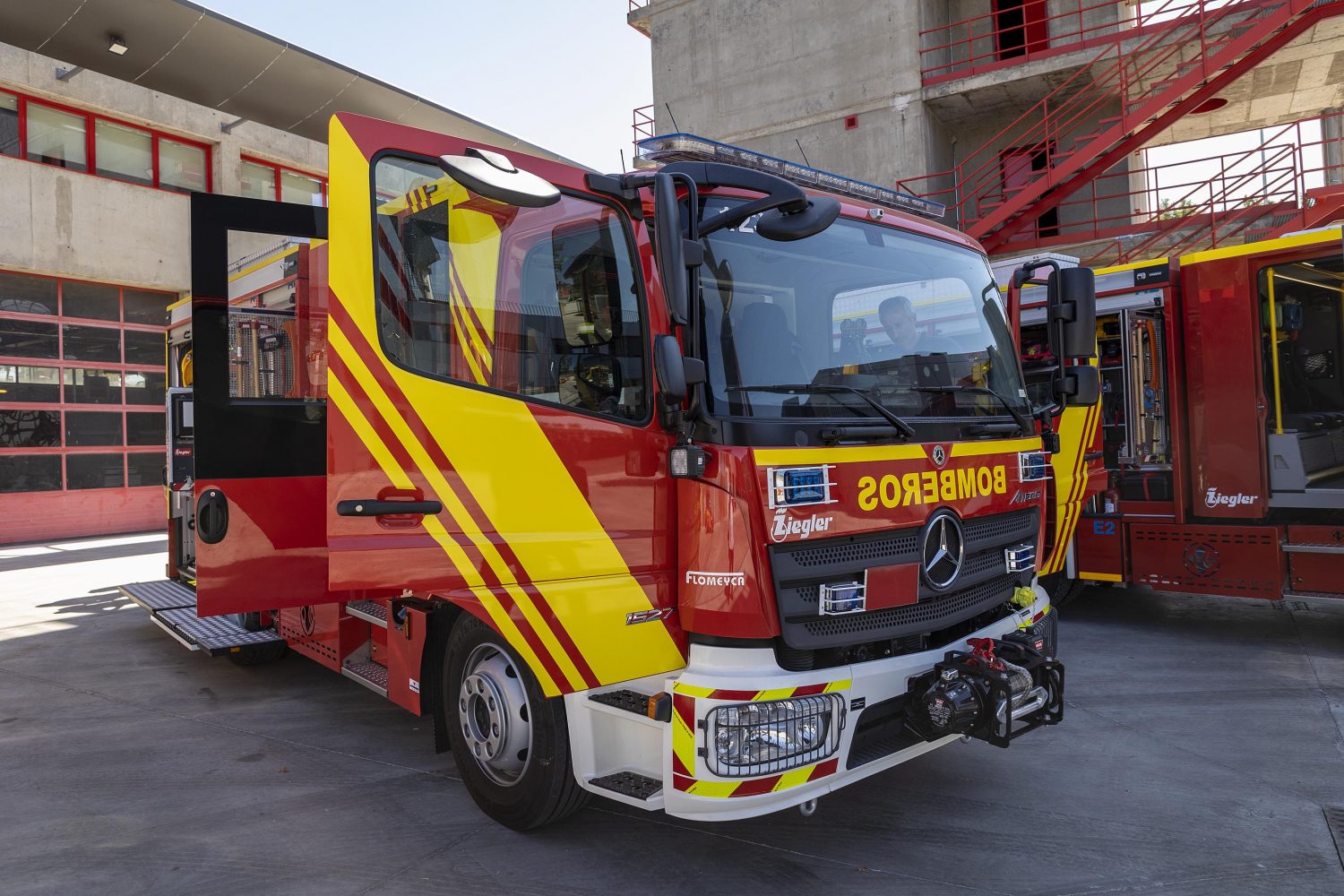 Los 25 vehículos pesados correspondían a siete bombas urbanas pesadas (BUP), siete bombas urbanas ligeras (BUL) o coches de primera salida, cinco bombas forestales, cuatro tanques de 6.500 litros y dos escalas articuladas y telescópicas de 32 metros. Previamente, se sumaron al servicio del Cuerpo de Bomberos 65 vehículos ligeros (entre coches de mando, furgones de personal y carga y coches de movimientos internos). /
