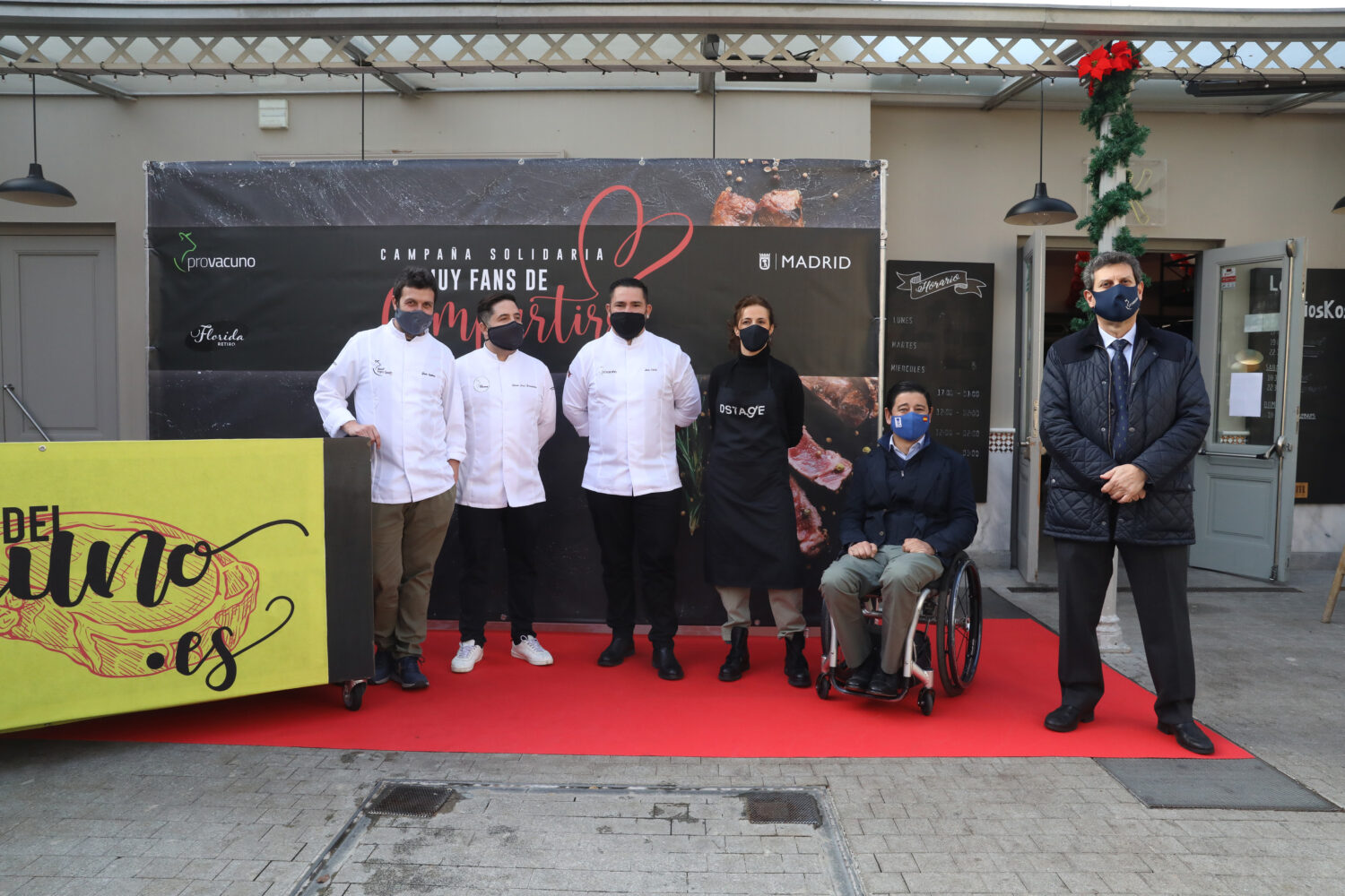 Fanjul ha asistido a la preparación en el Pabellón Florida Retiro de las raciones solidarias elaboradas con carne de vacuno por estrellas Michelin, con el objetivo de que los más necesitados puedan disfrutar de estas fechas tan señaladas. El concejal de Puente de Vallecas que hoy mismo ha repartido esos menús entre familias necesitadas de su distrito, ha agradecido la donación por parte de PROVACUNO de la materia prima y a los chefs su trabajo para elaborar las 1.000 comidas.