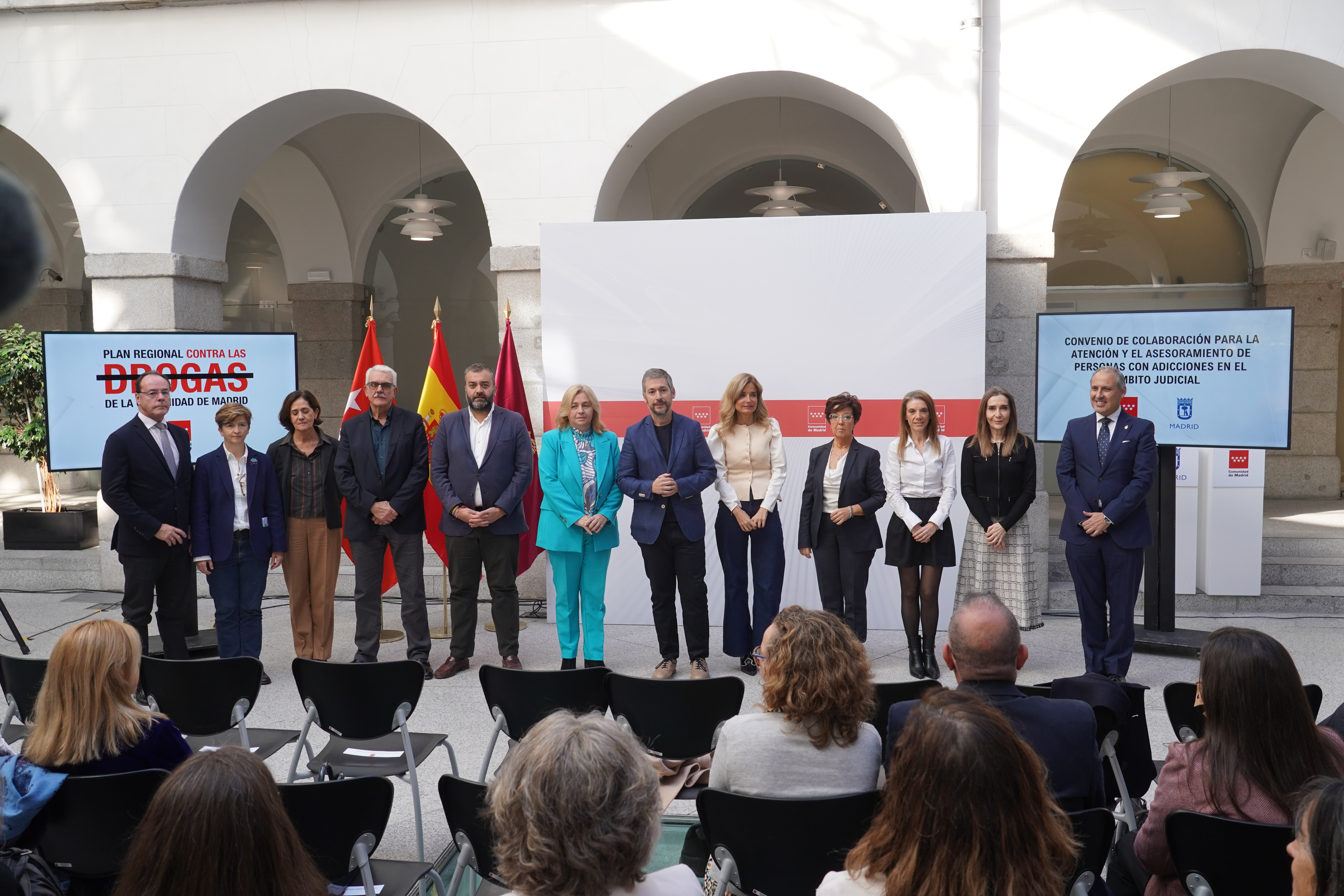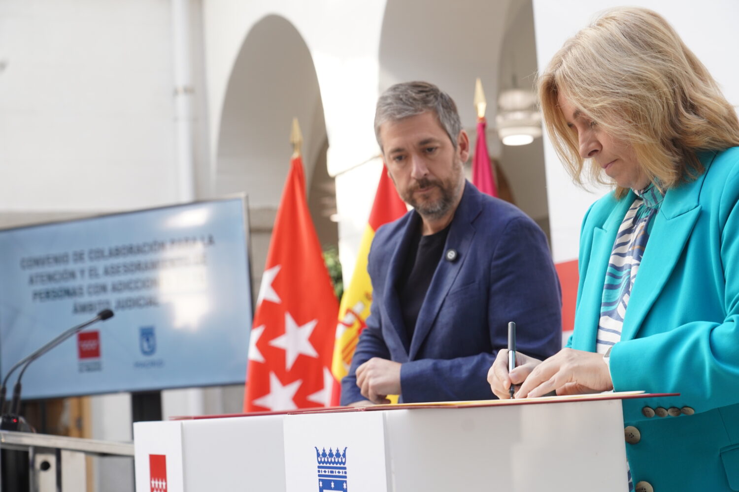 La vicealcaldesa de Madrid y delegada de Seguridad y Emergencias, Inma Sanz, ha firmado esta mañana con el consejero de Presidencia, Justicia y Administración Local de la Comunidad de Madrid, Miguel Ángel García, un convenio de colaboración que consolida el programa pionero de atención y mediación SAJIAD, dirigido a personas con adicciones que se encuentran inmersas en procesos judiciales. Esta iniciativa, con más de tres décadas de trayectoria, se desarrolla en los juzgados de Instrucción de Madrid bajo la coordinación experta del organismo municipal de Madrid Salud.