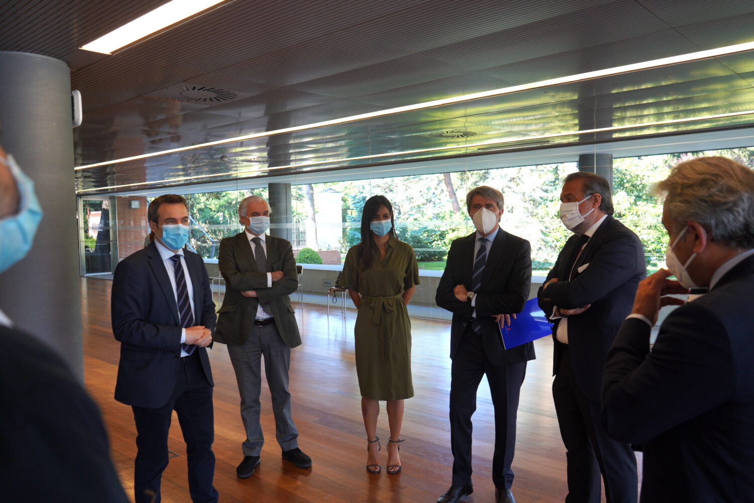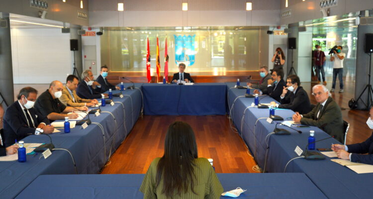 La vicealcaldesa de Madrid, Begoña Villacís, junto con el consejero de Transportes, Movilidad e Infraestructuras de la Comunidad de Madrid, Ángel Garrido, y el representante de la plataforma El Día Después, Carlos Mataix, se han reunido este miércoles con responsables de organizaciones empresariales, sindicatos y universidades de Madrid para impulsar un compromiso conjunto que fomente la movilidad sostenible mediante la coordinación del teletrabajo y la flexibilidad horaria de los trabajadores.