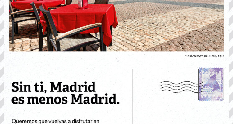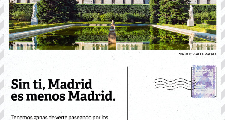 La campaña pone de manifiesto que todo aquello que hace grande al destino Madrid se reduce sin personas con quiénes compartirlo, sin sus visitantes. Una idea reflejada en su lema ‘Sin ti, Madrid es menos Madrid’. Con esta frase se pretende recordar que Madrid no es la misma sin quienes la visitan y para ellos, se lanza este otro mensaje final: ‘Puede que no sea ahora, pero será pronto’.
