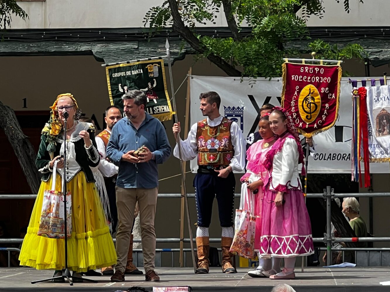 Los barajeños han podido asistir hoy a una nueva celebración de la Muestra de Folclore Madrileño, que ha tenido lugar este año en la plaza Mayor de Barajas. Esta XXI edición, organizada por la junta municipal, ha contado con la presencia del concejal del Barajas, Juan Peña, que ha presenciado la participación de tres grupos folclóricos, uno de ellos, el Grupo Folclórico Calderón de la Barca, del propio distrito.