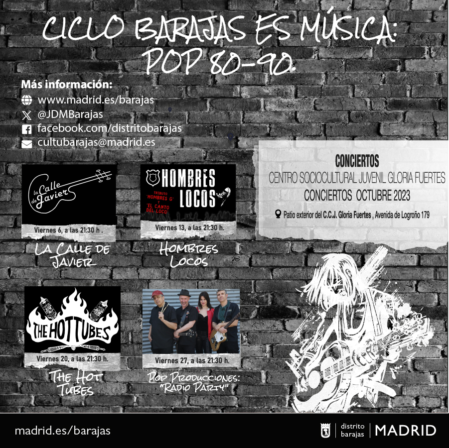 La Junta Municipal de Barajas ha organizado una nueva edición de su ciclo ‘Barajas es música’ que, en esta ocasión, tiene como protagonistas el pop y el rock de la década de los 80 y 90 en un tributo a temas cantados y bailados por varias generaciones que forman parte de la historia de la música.
