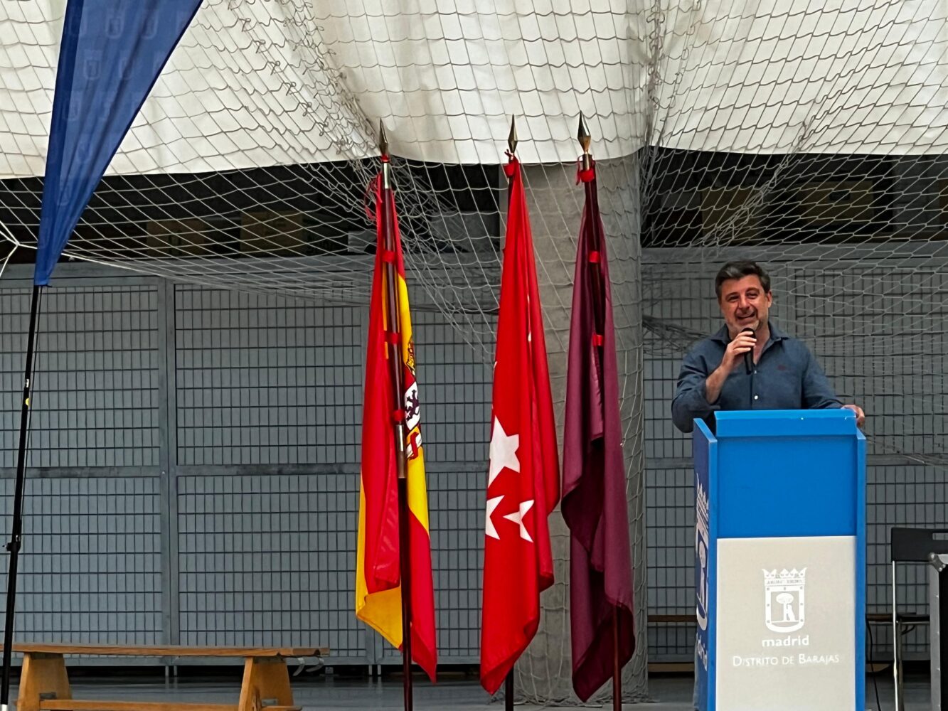 Tras una exhibición de baile del dúo Hand to Hand, el concejal de Barajas ha participado en la entrega de los trofeos a los equipos campeones y subcampeones de las competiciones organizadas en el marco de los 45º Juegos Deportivos Municipales y la Copa Primavera durante esta temporada 2024-2025.
