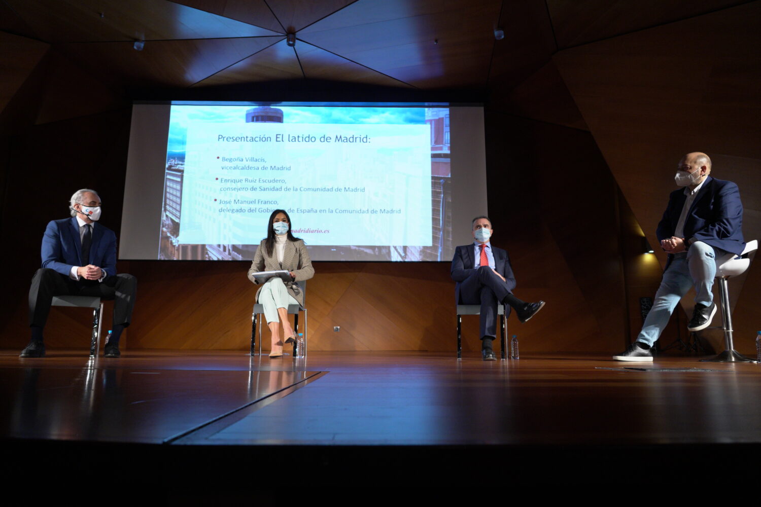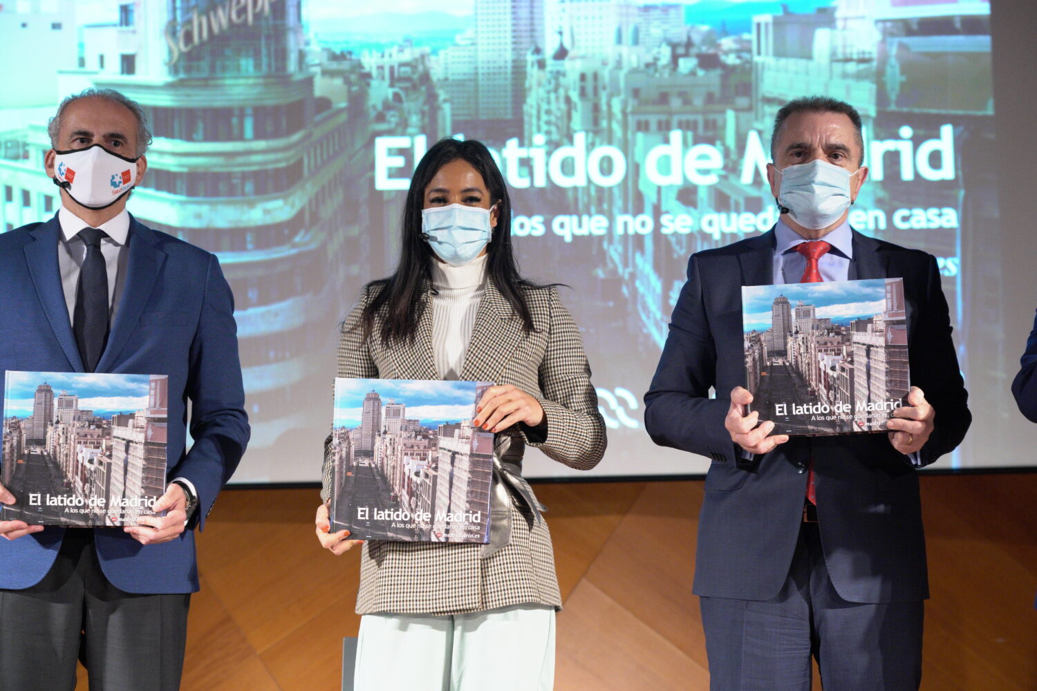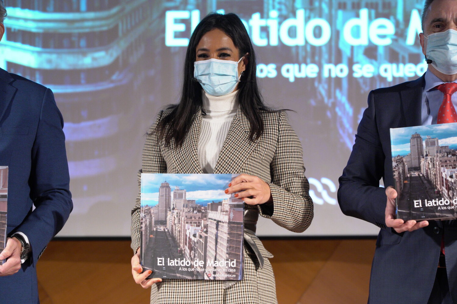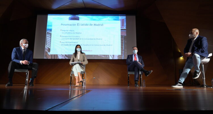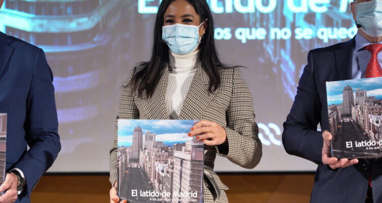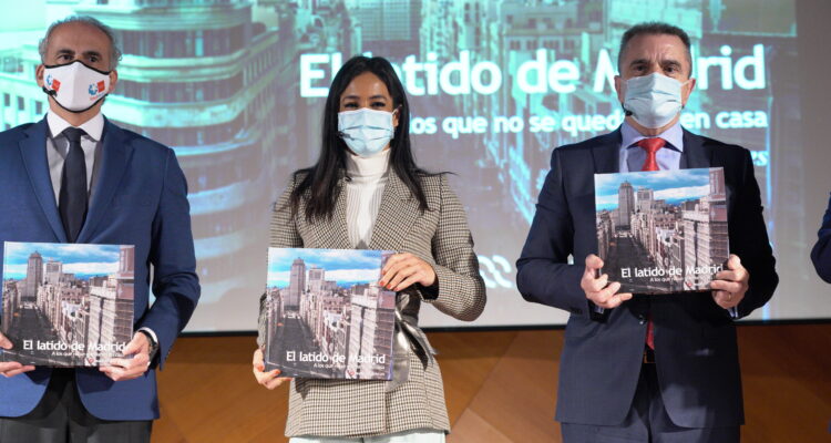 La vicealcaldesa de Madrid, Begoña Villacís, ha ejercido esta mañana como madrina en la presentación del libro ‘El Latido de Madrid’ junto al consejero de Sanidad de la Comunidad de Madrid, Enrique Ruiz Escudero, y el delegado del Gobierno, José Manuel Franco. La obra está editada por el grupo de comunicación Madridiario como homenaje ‘A los que no se quedaron en casa’ durante la pandemia.