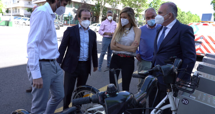 El delegado de Medio Ambiente y Movilidad, Borja Carabante, y el director gerente de EMT, Alfonso Sánchez, acompañados por la concejala del distrito de Chamartín, Sonia Cea, han presentado esta mañana la renovada flota de mantenimiento del servicio BiciMAD. Se trata de tres furgones 100 % eléctricos, transformados para transportar todas las herramientas y recambios necesarios con los que realizar las labores de mantenimiento en calle del sistema, tanto en estaciones como en bicicletas.