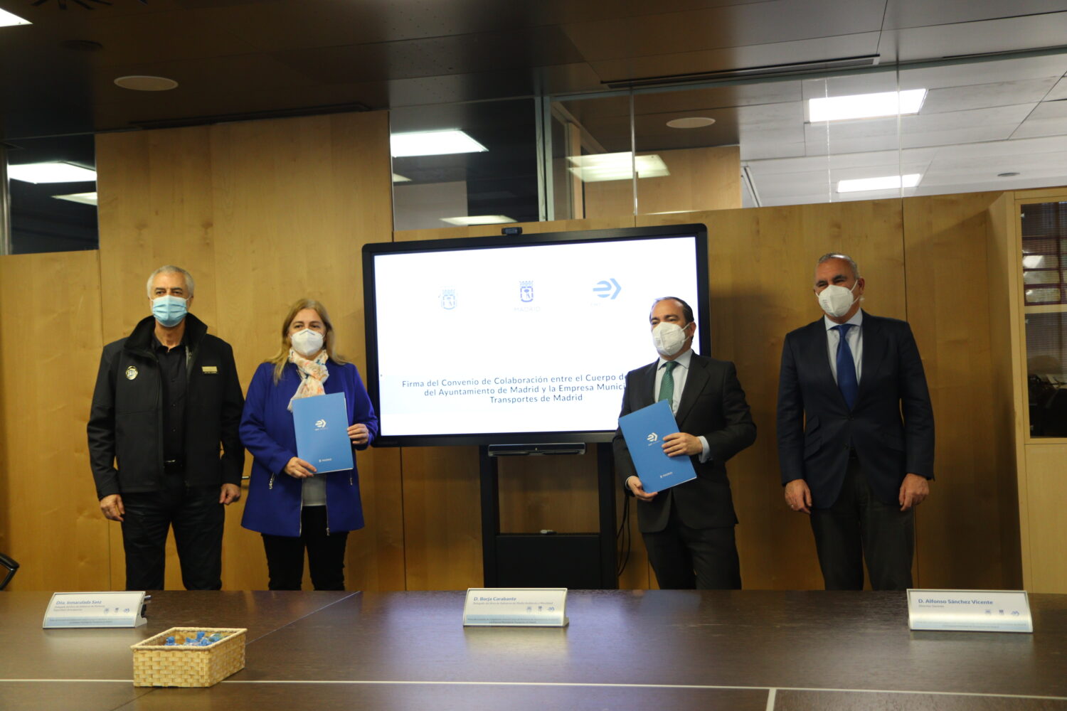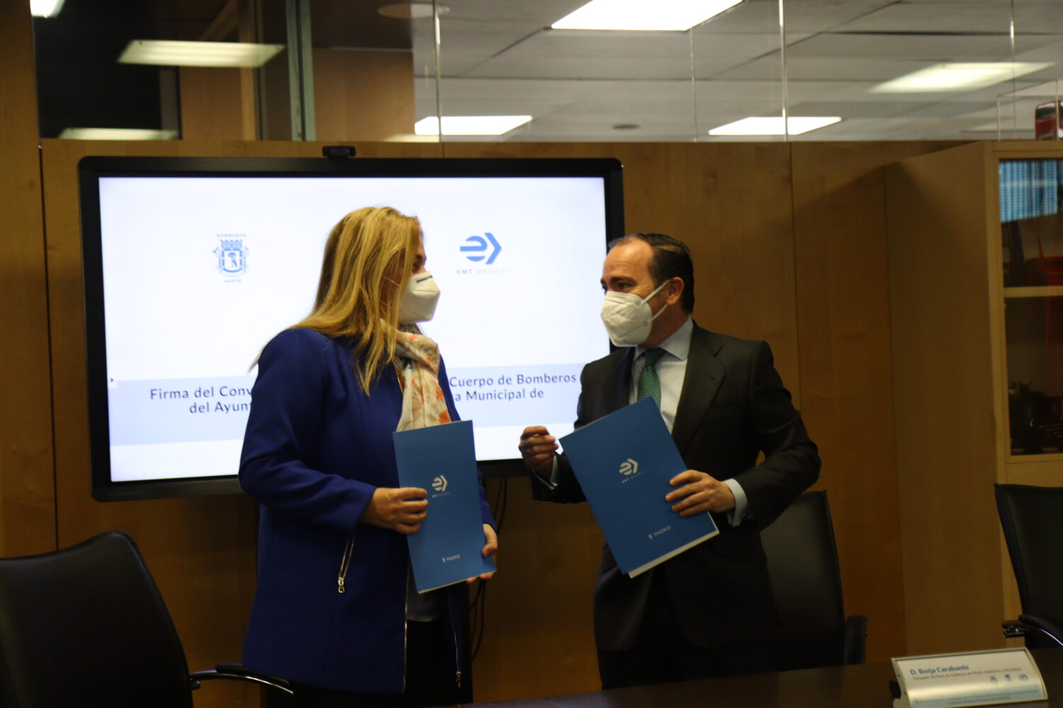 La delegada de Seguridad y Emergencias y portavoz municipal, Inmaculada Sanz, y el delegado de Medio Ambiente y Movilidad, Borja Carabante, han firmado esta mañana un convenio de colaboración por el que Bomberos de Madrid y la Empresa Municipal de Transportes (EMT) se comprometen a fomentar la colaboración, coordinación y cooperación ante situaciones de emergencia.