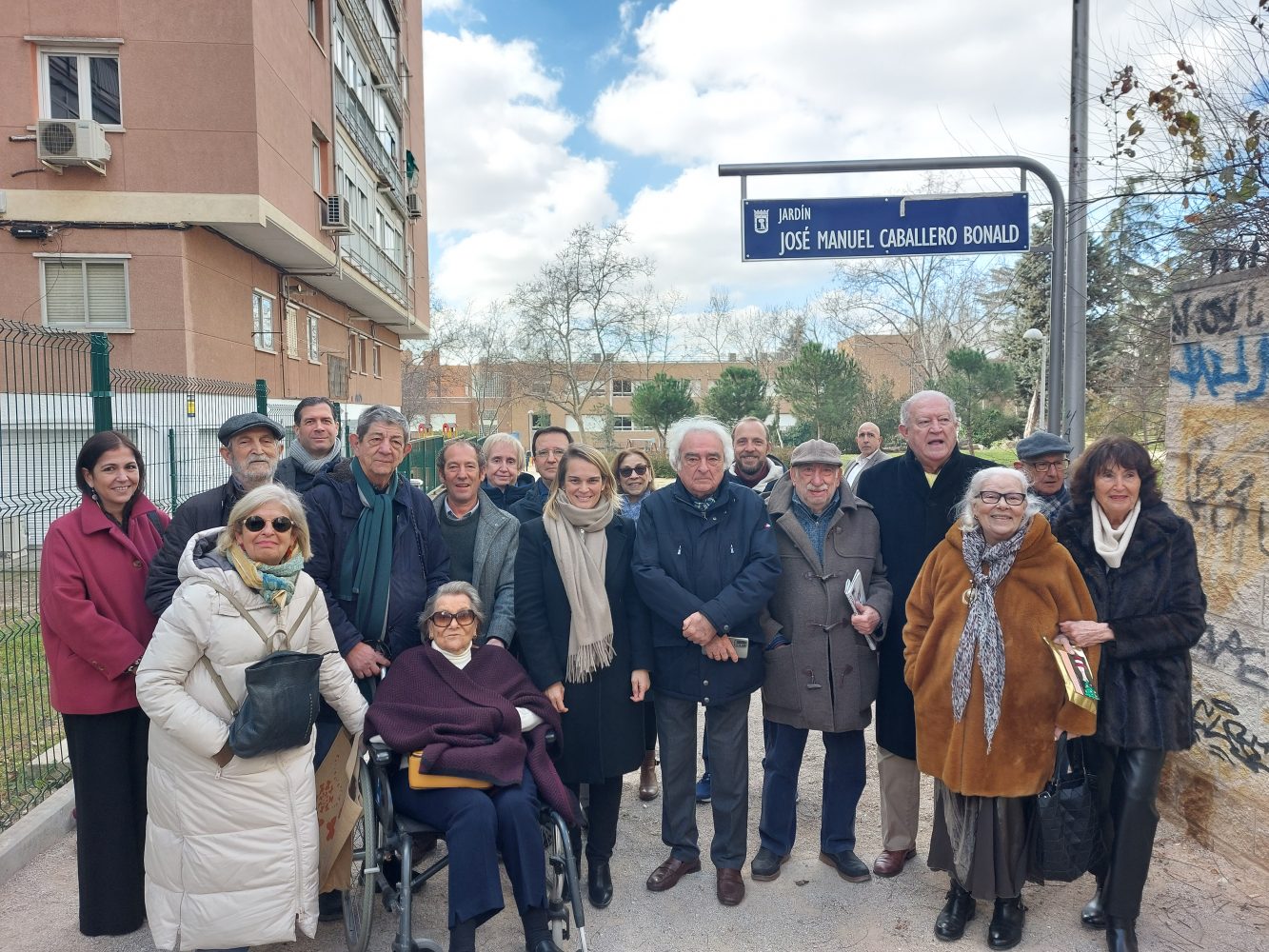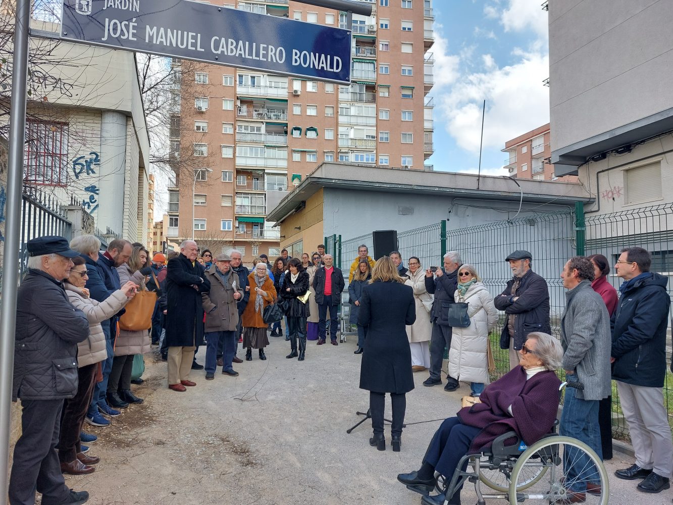 El escritor y ensayista José Manuel Caballero Bonald tiene desde hoy unos jardines dedicados a su nombre, ubicados a la altura del número 75 de la avenida del Doctor Federico Rubio y Galí, en el barrio de Ciudad Universitaria. Loreto Sordo, concejala de Moncloa-Aravaca, acompañada por la familia del escritor, ha inaugurado esta mañana la nueva denominación de esta zona verde, una iniciativa de la Asociación de Vecinos San Nicolás-Dehesa de la Villa aprobada por unanimidad en el Pleno del distrito del pasado mes de febrero.