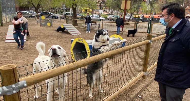 El área canina dispone de vallado y un bordillo perimetral y cuenta con elementos de ejercicios para perros como balancín, pasarela, rueda, salto de altura o túneles. /