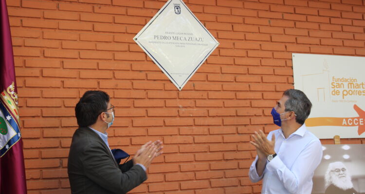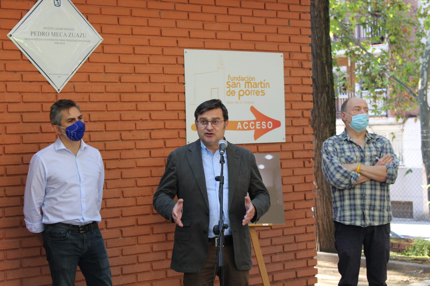 El delegado de Familias, Igualdad y Bienestar Social, Pepe Aniorte, y el concejal de Carabanchel, Álvaro González, han inaugurado hoy una placa en la Fundación Benéfica San Martín de Porres en conmemoración de Pedro Meca Zuazu, dominico fallecido en París en 2015 y referente en la atención a las personas sin hogar, a las que dedicó su vida.