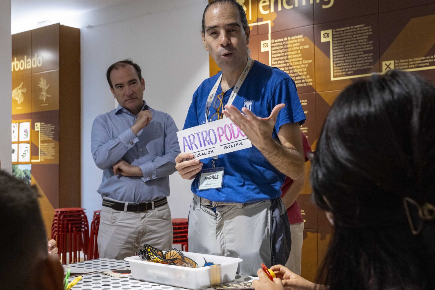 El delegado de Urbanismo, Medio Ambiente y Movilidad, Borja Carabante, ha participado esta mañana en la actividad ‘El color de las mariposas’, una propuesta educativa y creativa que combina aprendizaje, juego y arte que el Departamento de Educación Ambiental del Ayuntamiento ofrece a todos los madrileños de forma gratuita.