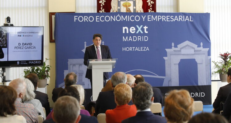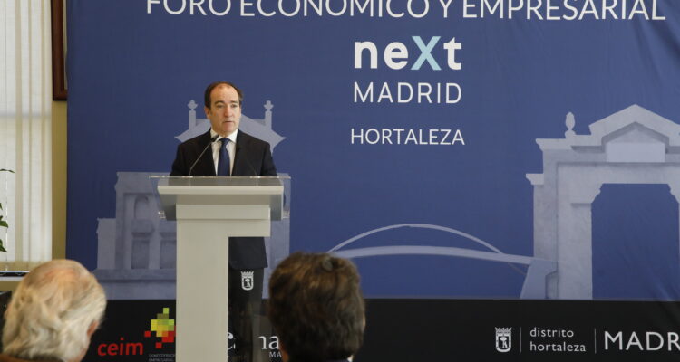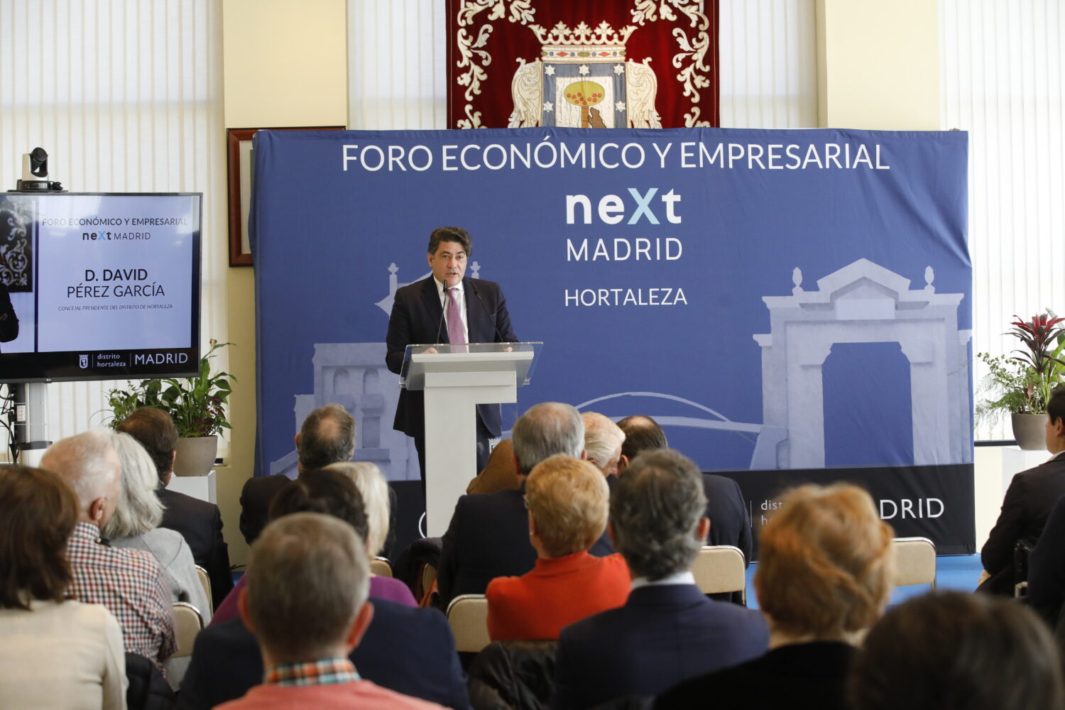 El Foro Económico y Empresarial de Hortaleza es un encuentro organizado por la junta municipal del distrito, en colaboración con la Confederación Empresarial de Madrid-CEOE (CEIM), la Cámara Oficial de Comercio, Industria y Servicios de Madrid y la asociación empresarial de Manoteras ‘Next Madrid’ en el que han participado en ediciones anteriores el presidente de CEIM Confederación Empresarial de Madrid-CEOE, Miguel Garrido, y la delegada de Economía, Innovación y Hacienda del Ayuntamiento de Madrid, Engracia Hidalgo. /