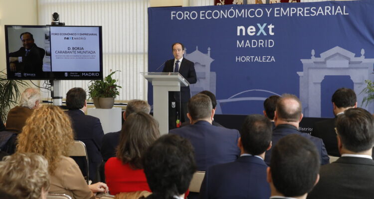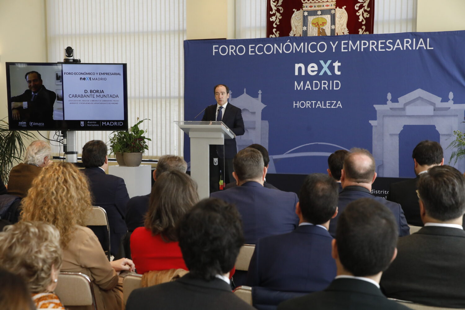 El delegado de Urbanismo, Medio Ambiente y Movilidad, Borja Carabante, ha participado en el IV Foro Económico y Empresarial de Hortaleza ‘Next Madrid’ que busca promover la colaboración entre los agentes económicos y sociales del distrito, así como el crecimiento y la innovación en el mismo. Según ha explicado David Pérez, concejal de Hortaleza, junta que organiza el foro, se trata de “un lugar de encuentro del sector empresarial y del sector público para construir el Madrid del futuro”.