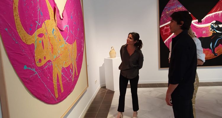 La delegada de Cultura, Turismo y Deporte, Andrea Levy, ha visitado este mediodía la exposición Monólogo, del torero francés Sebastián Castella, en Casa de Vacas, junto al autor de las obras. En esta muestra, que puede verse hasta el 29 de mayo en este espacio cultural del parque de El Retiro, el visitante podrá disfrutar de una colección muy personal formada por un total de 25 obras entre esculturas y pinturas en acrílico sobre lienzo y, en su parte más original, también sobre capotes de brega, realizadas por el propio Castella tras su retirada de los ruedos hace dos años.