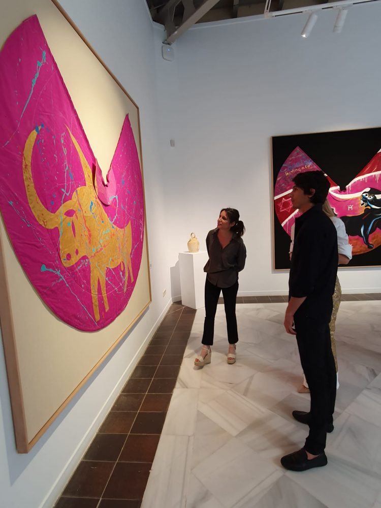 La delegada de Cultura, Turismo y Deporte, Andrea Levy, ha visitado este mediodía la exposición Monólogo, del torero francés Sebastián Castella, en Casa de Vacas, junto al autor de las obras. En esta muestra, que puede verse hasta el 29 de mayo en este espacio cultural del parque de El Retiro, el visitante podrá disfrutar de una colección muy personal formada por un total de 25 obras entre esculturas y pinturas en acrílico sobre lienzo y, en su parte más original, también sobre capotes de brega, realizadas por el propio Castella tras su retirada de los ruedos hace dos años.