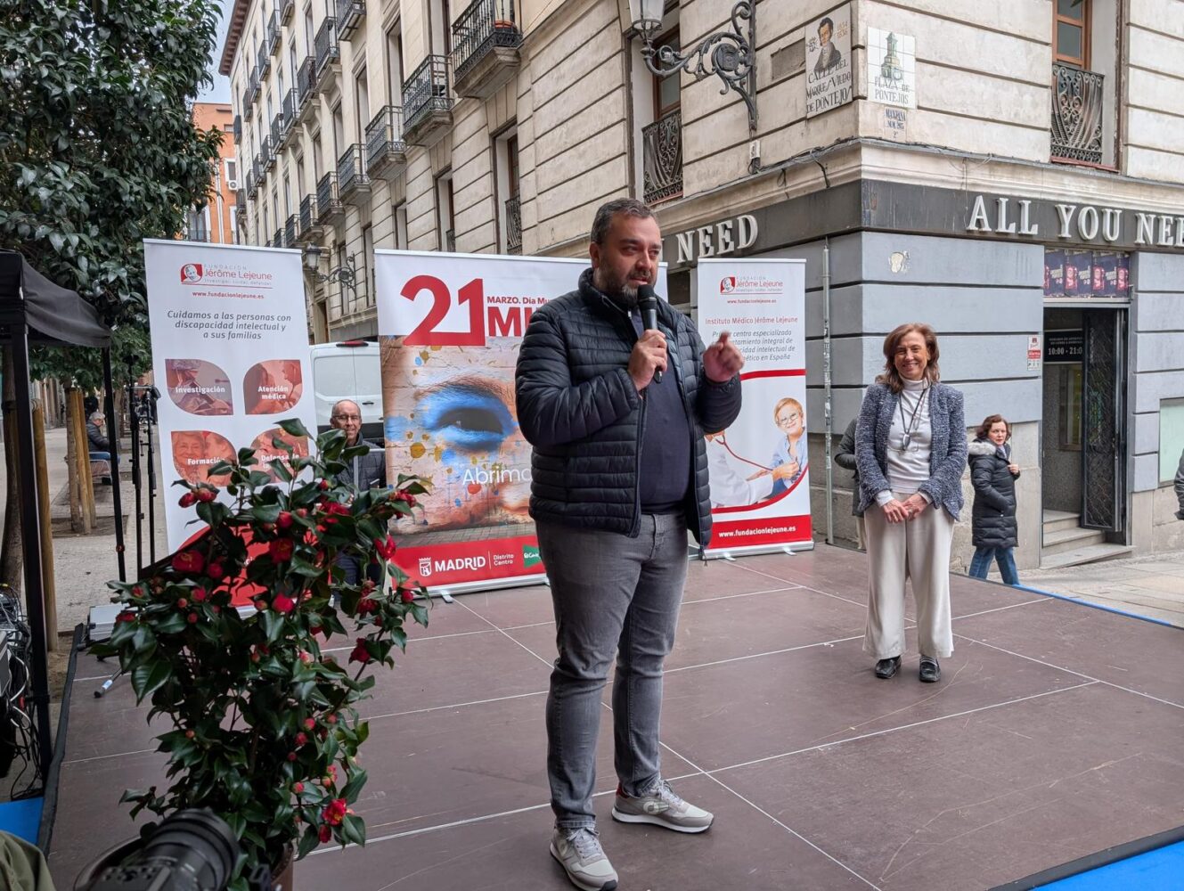 La plaza de Pontejos se ha convertido en el escenario del desfile inclusivo de moda ‘21 Miradas’, impulsado por la Fundación Jérôme Lejeune, con sede en el distrito de Centro, en colaboración con la junta municipal. El concejal del distrito, Carlos Segura, ha clausurado hoy esta cita, celebrada con motivo del Día Mundial del Síndrome de Down, y ha compartido su satisfacción porque Centro se haya llenado de “moda no pasajera: la moda de mirar más, de mirar mejor y de mirar juntos por una sociedad mas justa”. En palabras de Segura, “este tipo de encuentros son los pequeños gestos que hacen cambiar nuestra sociedad”.