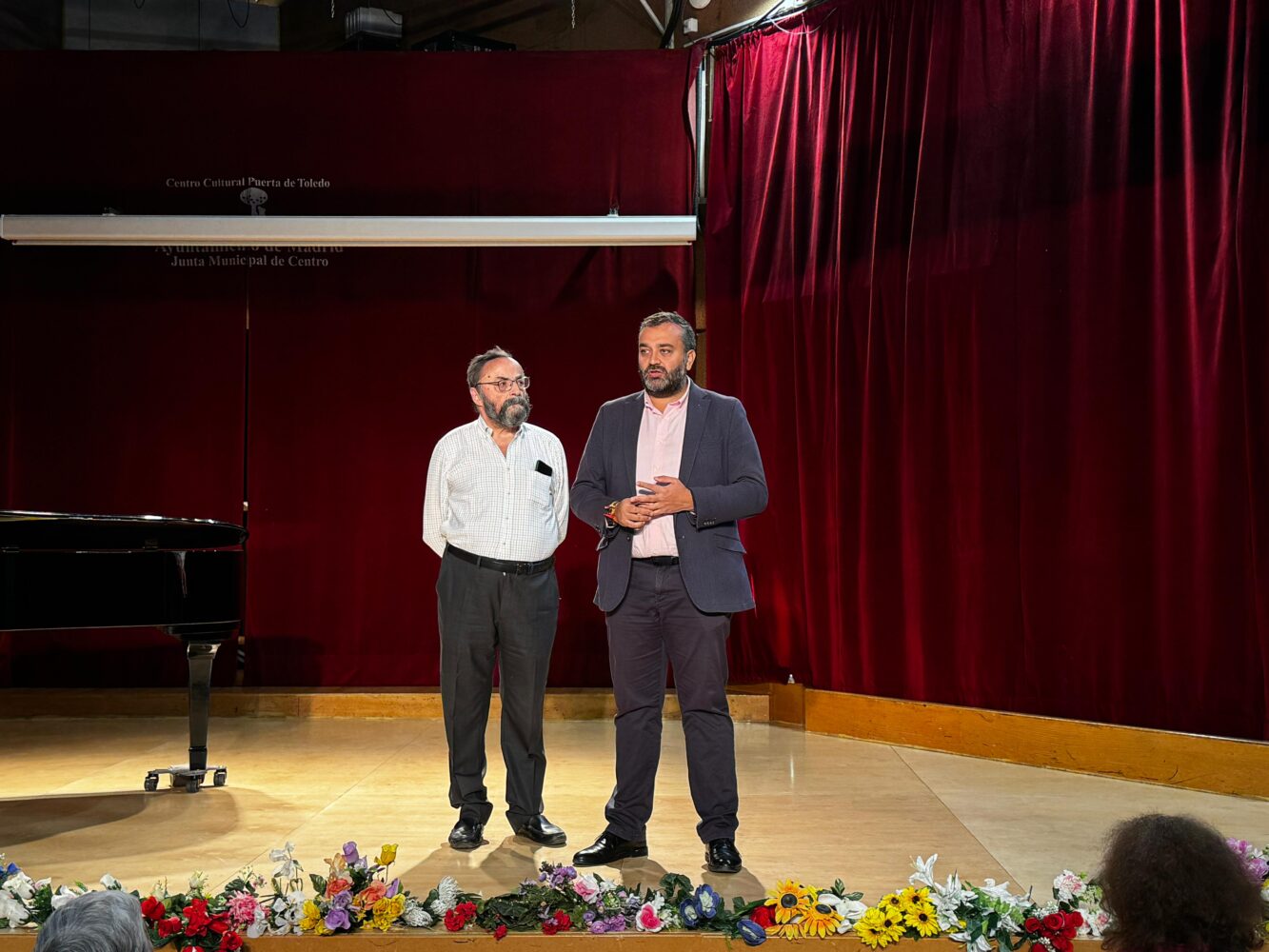 Celebrado en el Centro Cultural Puerta de Toledo, el acto de homenaje ha comenzado con una actuación de zarzuela, en la que los asistentes han disfrutado de piezas clásicas como El barberillo de Lavapiés, Agua, azucarillos y aguardiente y La verbena de la Paloma, recordando así las recientes verbenas populares de San Cayetano, San Lorenzo y de la Virgen de la Paloma.