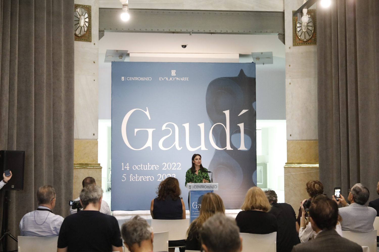 La delegada del Área de Cultura, Turismo y Deporte, Andrea Levy, ha presentado hoy en CentroCentro la exposición Gaudí. Organizada por Evolucionarte y CentroCentro y comisariada por Charo Sanjuán, podrá verse en este espacio cultural del Ayuntamiento de Madrid desde mañana hasta el 5 de febrero de 2023. Levy ha agradecido la colaboración a las instituciones públicas y privadas, museos, universidades, archivos, galeristas y coleccionistas privados, «sin los cuales esta exposición, la primera en veinte años que Madrid dedica a este creador, no hubiera sido posible».