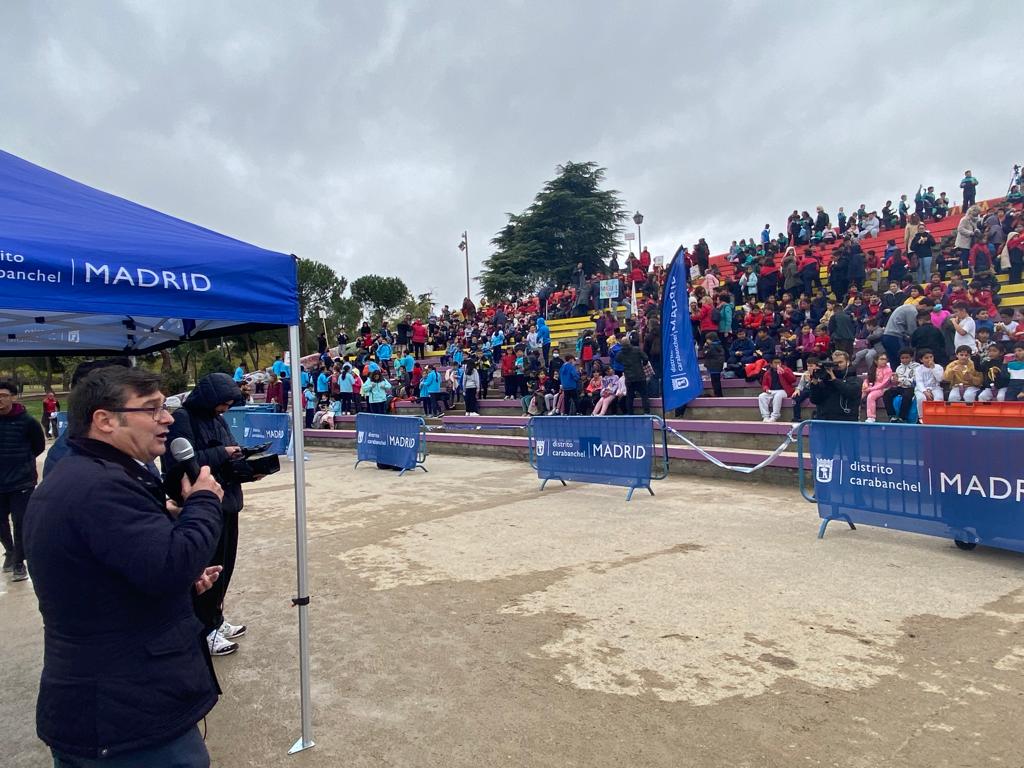 Esta mañana en el parque de las Cruces se han dado cita cerca de 1.800 estudiantes de 19 colegios para participar en el 17º Cross Escolar de Carabanchel. El concejal del distrito, Álvaro González, ha entregado material deportivo a los colegios participantes y ha explicado el fin que persigue esta prueba. “El objetivo no es competitivo. Pretende fomentar la práctica deportiva pues con ella se promueven las relaciones sociales entre los alumnos, así como su bienestar físico y su mental, y, además, insistimos en la importancia de la alimentación sana”.
