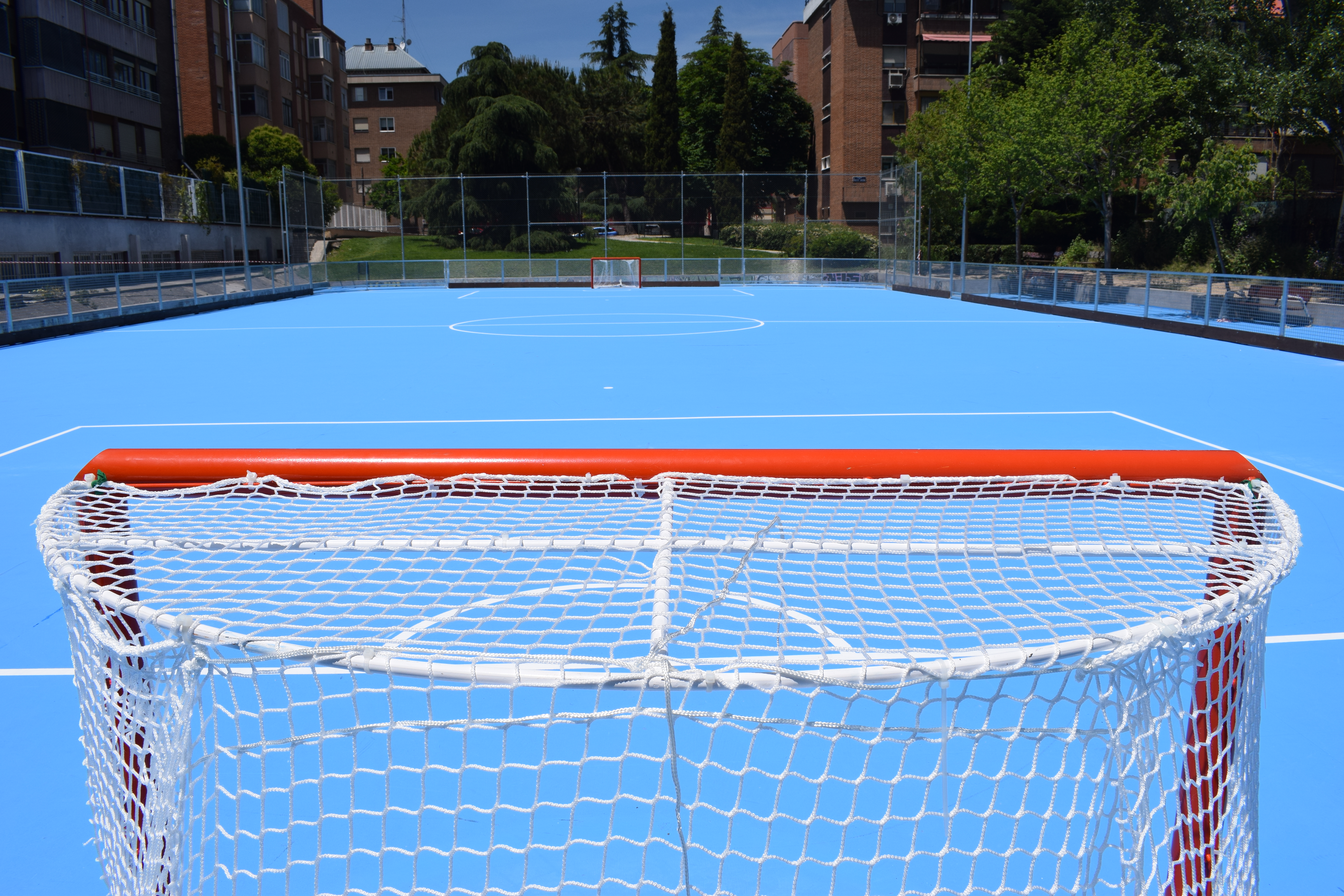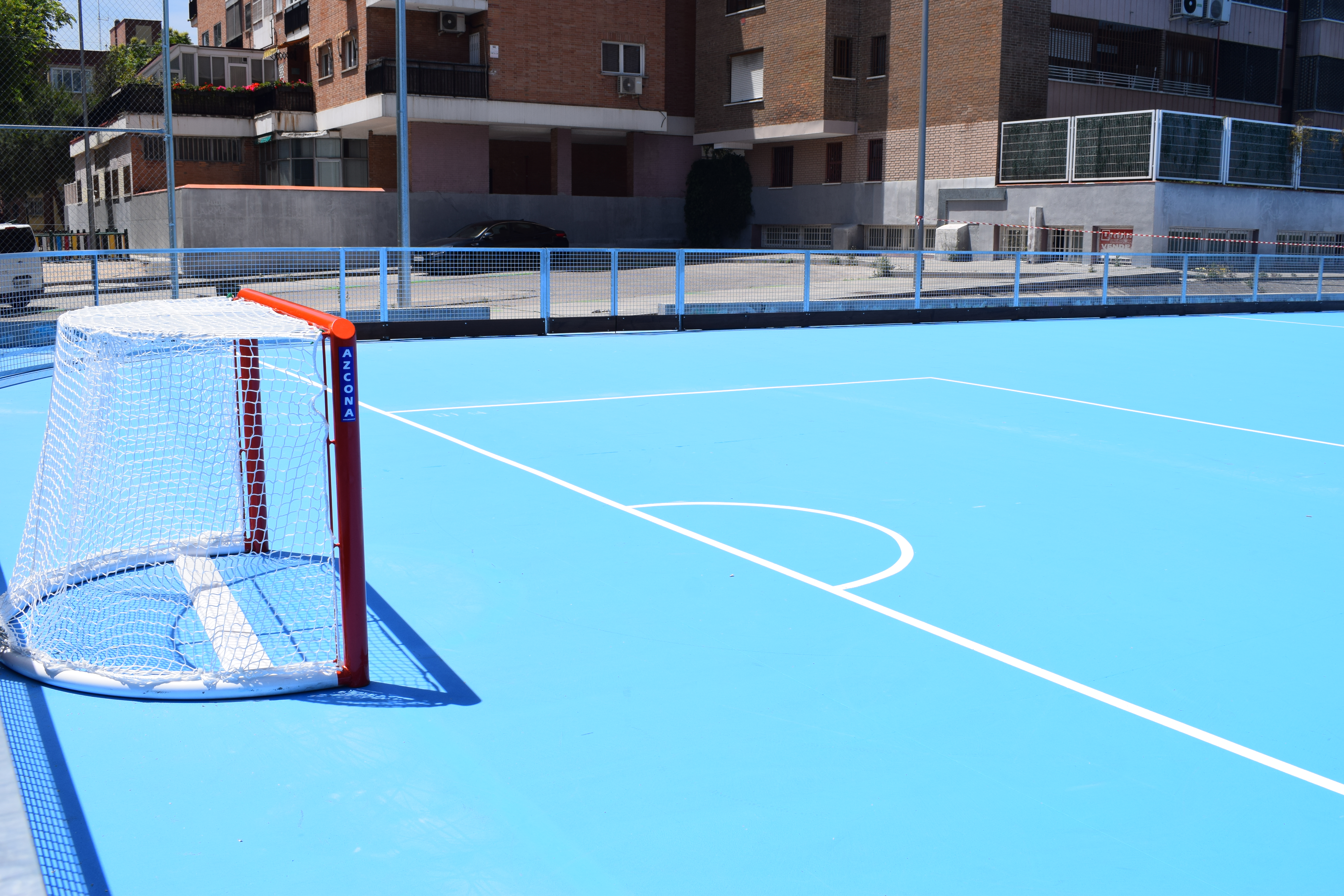 La actuación para convertirla en pista de hockey sobre patines ha supuesto la reconstrucción total de todos los elementos adecuados de cerramientos y recogida de aguas. Para el acabado del pavimento se han utilizado resinas específicas para este tipo de pistas deportivas y se ha señalizado la zona de juego. Además, se ha incluido la preinstalación de alumbrado que se completará una vez se proceda a la instalación de alumbrado en el resto de pistas deportivas elementales que carecen de ello.