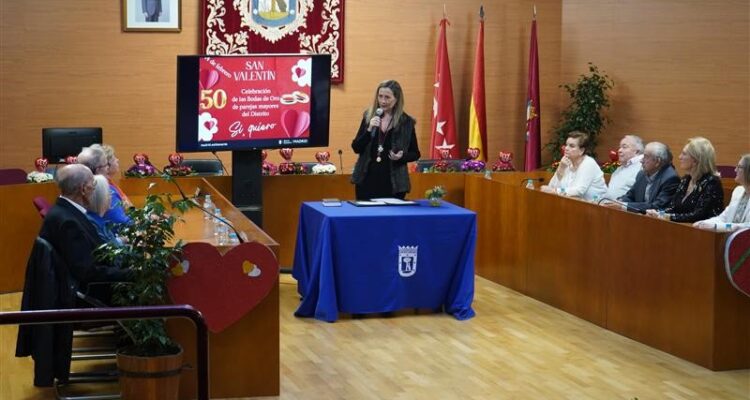 Con motivo de la celebración de San Valentín, cinco parejas de Chamartín, socios de los centros municipales de mayores, han renovado sus votos nupciales durante un homenaje a las parejas que cumplen sus bodas de oro este año. La ceremonia ha sido oficiada por la concejala del distrito, Yolanda Estrada, en el salón de actos de la junta municipal, decorado especialmente para la ocasión y con la presencia de una treintena de personas entre familiares, amigos y socios de los centros.