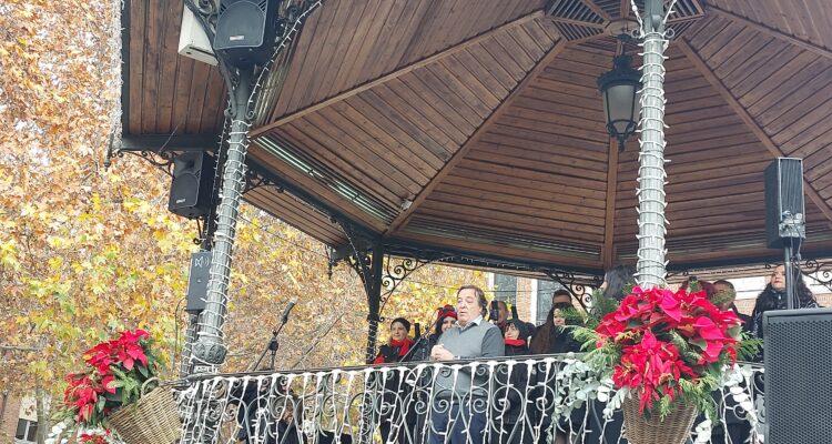 La plaza de Chamberí ha acogido este mediodía la actuación del Coro de Góspel y Música Moderna de la Universidad Complutense de Madrid, actividad organizada por la junta municipal del distrito con motivo de su programación navideña y que ha contado con la asistencia del concejal de Chamberí, Jaime González Taboada.