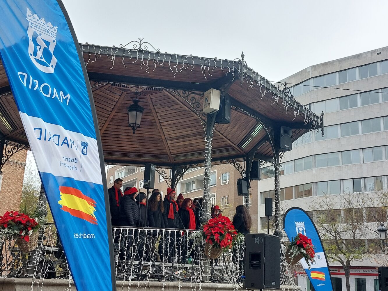 La plaza de Chamberí ha acogido este mediodía la actuación del Coro de Góspel y Música Moderna de la Universidad Complutense de Madrid, actividad organizada por la junta municipal del distrito con motivo de su programación navideña y que ha contado con la asistencia del concejal de Chamberí, Jaime González Taboada.