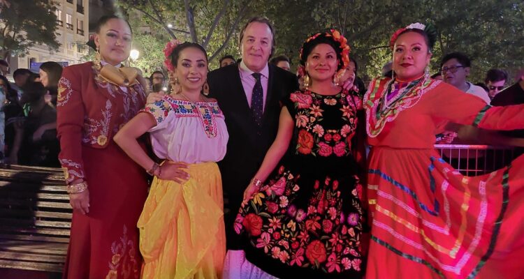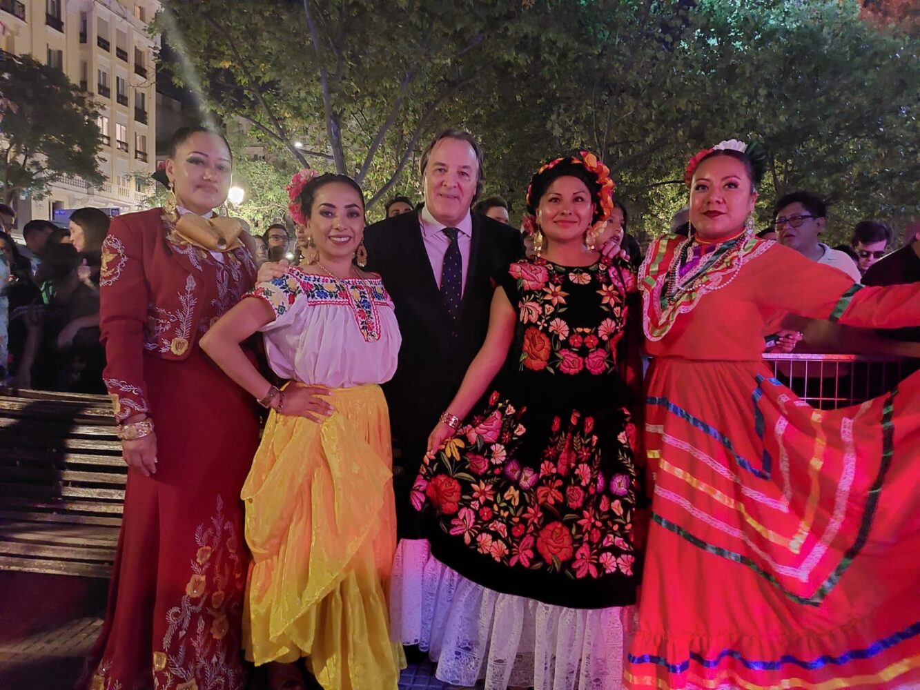 La plaza de Chamberí ha sido el escenario esta noche de la celebración del 215º aniversario del inicio del movimiento de independencia de México. El acto, organizado por la Embajada de México con la colaboración de la Junta Municipal de Chamberí, ha contado con la presencia del concejal del distrito, Jaime González Taboada, y el embajador, Quirino Ordaz, y ha consistido en la arenga popularmente conocida como ‘Grito de la Independencia’. Seguidamente, se ha entonado el himno nacional de México y los asistentes han podido disfrutar de diversos espectáculos del folclore del país.
