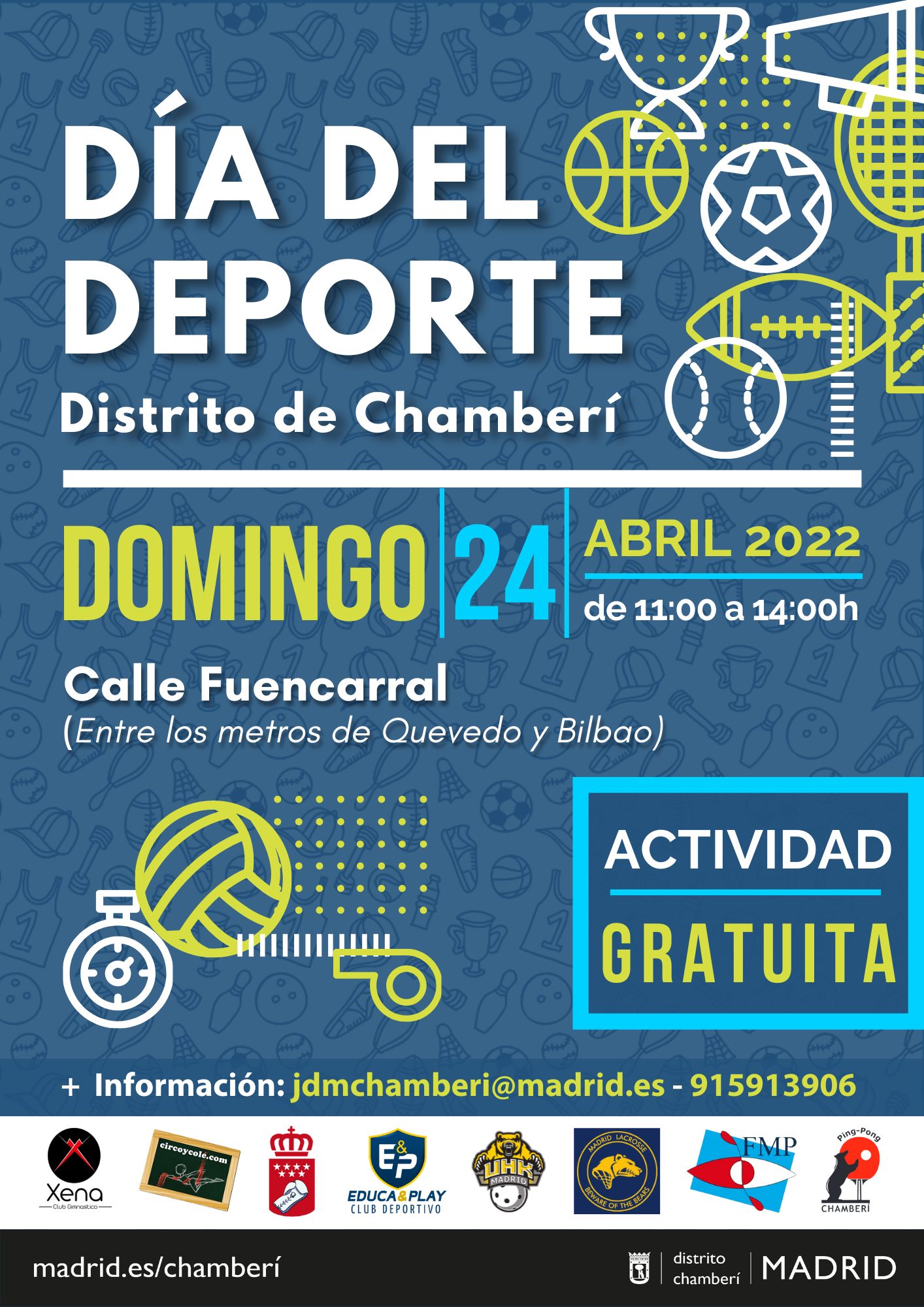 El Día del Deporte de Chamberí se desarrollará en la calle de Fuencarral, entre las glorietas de Quevedo y Bilbao, tramo de vía que se cerrará al tráfico para instalar pistas y equipamiento en los que practicar una gran variedad de juegos y disciplinas deportivas como tenis de mesa, fútbol sala, vóley playa, bádminton, boxeo y ajedrez, entre otras.