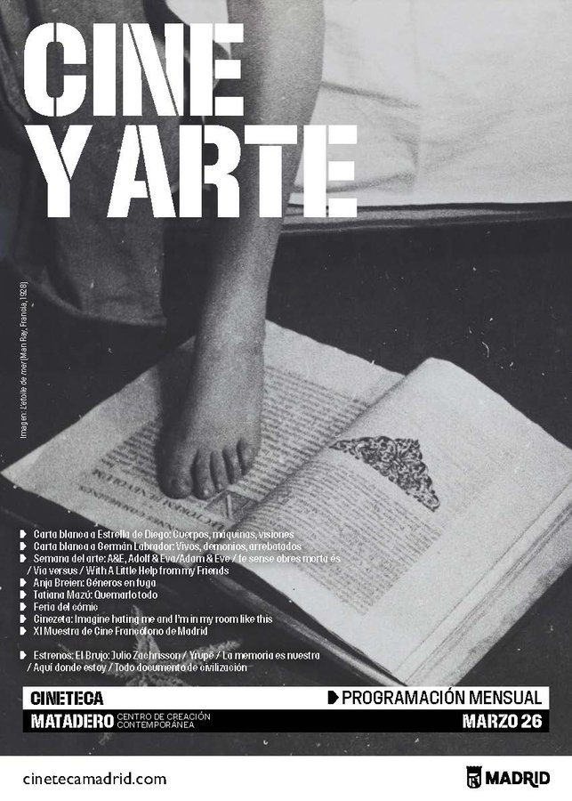 Con motivo de la celebración de la Semana del Arte en Matadero Madrid (del 2 al 8 de marzo), Cineteca Madrid, espacio del Área de Cultura, Turismo y Deporte, se convierte este mes de marzo en un lugar de encuentro entre cine y arte. A modo de laboratorio, la programación reunirá proyecciones, estrenos, cartas blancas y encuentros con artistas que exploran prácticas contemporáneas en torno a la materia, el cuerpo, la voz, el archivo, el paisaje y la palabra.