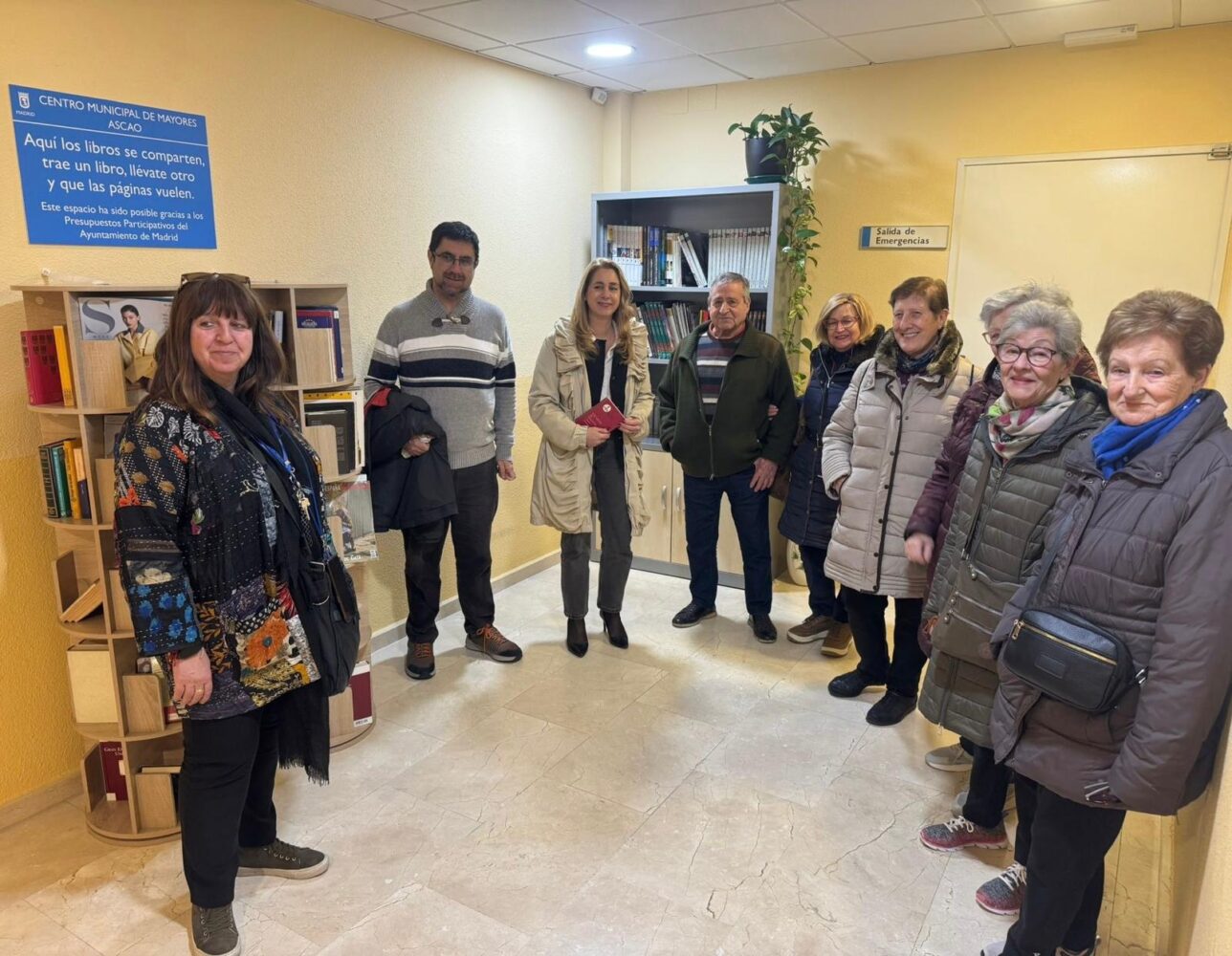 La concejala de Ciudad Lineal, Nadia Álvarez, ha visitado esta mañana el punto de intercambio de libros instalado en el Centro Municipal de Mayores de Ascao para promover la lectura y el intercambio de ejemplares entre los socios. Los objetivos de este proyecto son fomentar la lectura como forma de entretenimiento, proporcionar apoyo cognitivo y combatir la soledad no deseada.