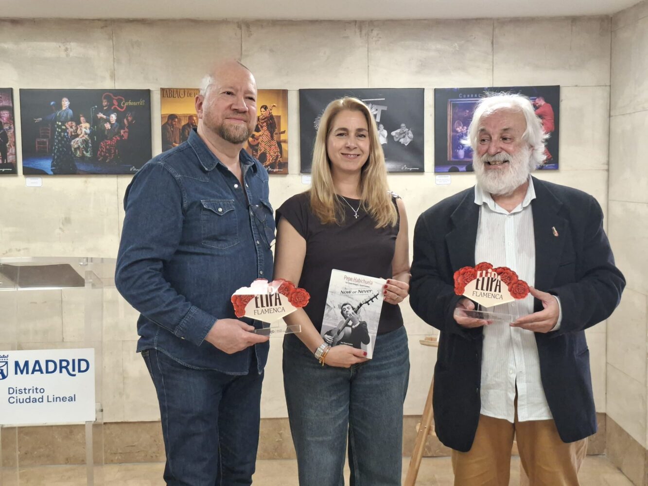 La concejala de Ciudad Lineal, Nadia Álvarez, ha entregado esta tarde, en el Centro Cultural Príncipe de Asturias, los Reconocimientos Elipa Flamenca al guitarrista Pepe Habichuela y al comunicador y divulgador de flamenco Rafael Manjavacas. El acto, que coincide con la conmemoración del Día Internacional del Pueblo Gitano, pone en valor la importancia del arte flamenco para la ciudadanía de Madrid.