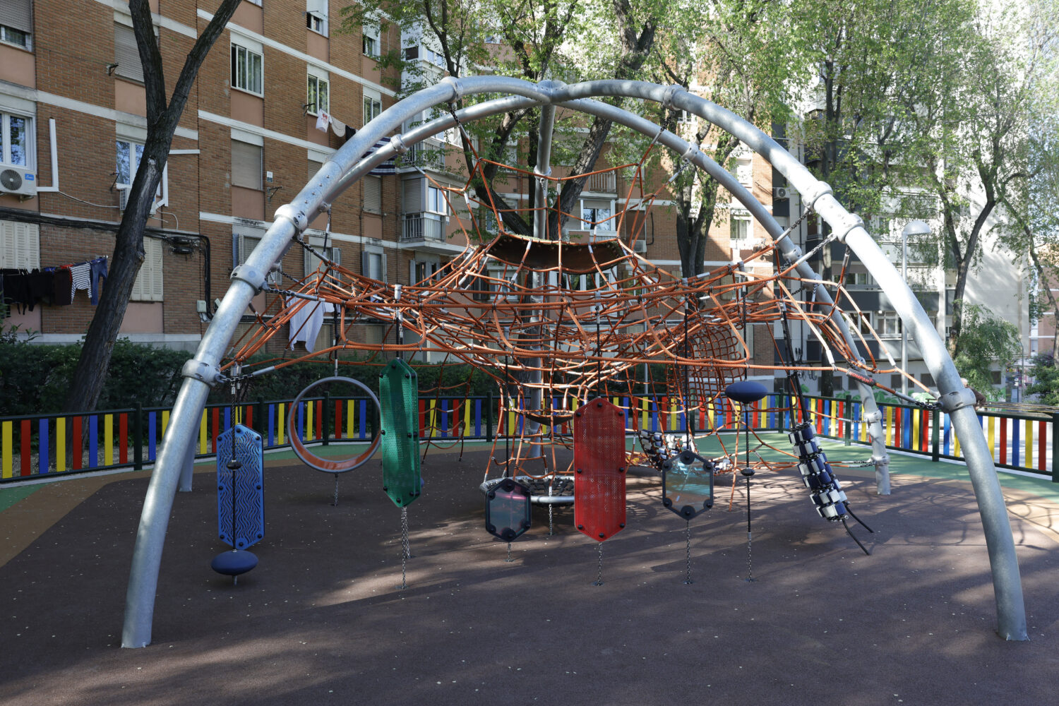 El parque incorpora un área infantil con una cúpula sensorial, que consiste en una estructura de juego de 7,5 metros de diámetro y 4,5 metros de altura. La instalación, con capacidad para acoger hasta 60 menores de forma simultánea, está diseñada para que niños de distintas edades y capacidades puedan jugar juntos. El interior de la estructura permite el acceso de personas en silla de ruedas o acompañadas por un cuidador, gracias a caminos y zonas amplias que facilitan los giros. Las redes tridimensionales permiten trepar, gatear y desplazarse y su transparencia posibilita la comunicación y la cooperación entre los distintos niveles de juego.