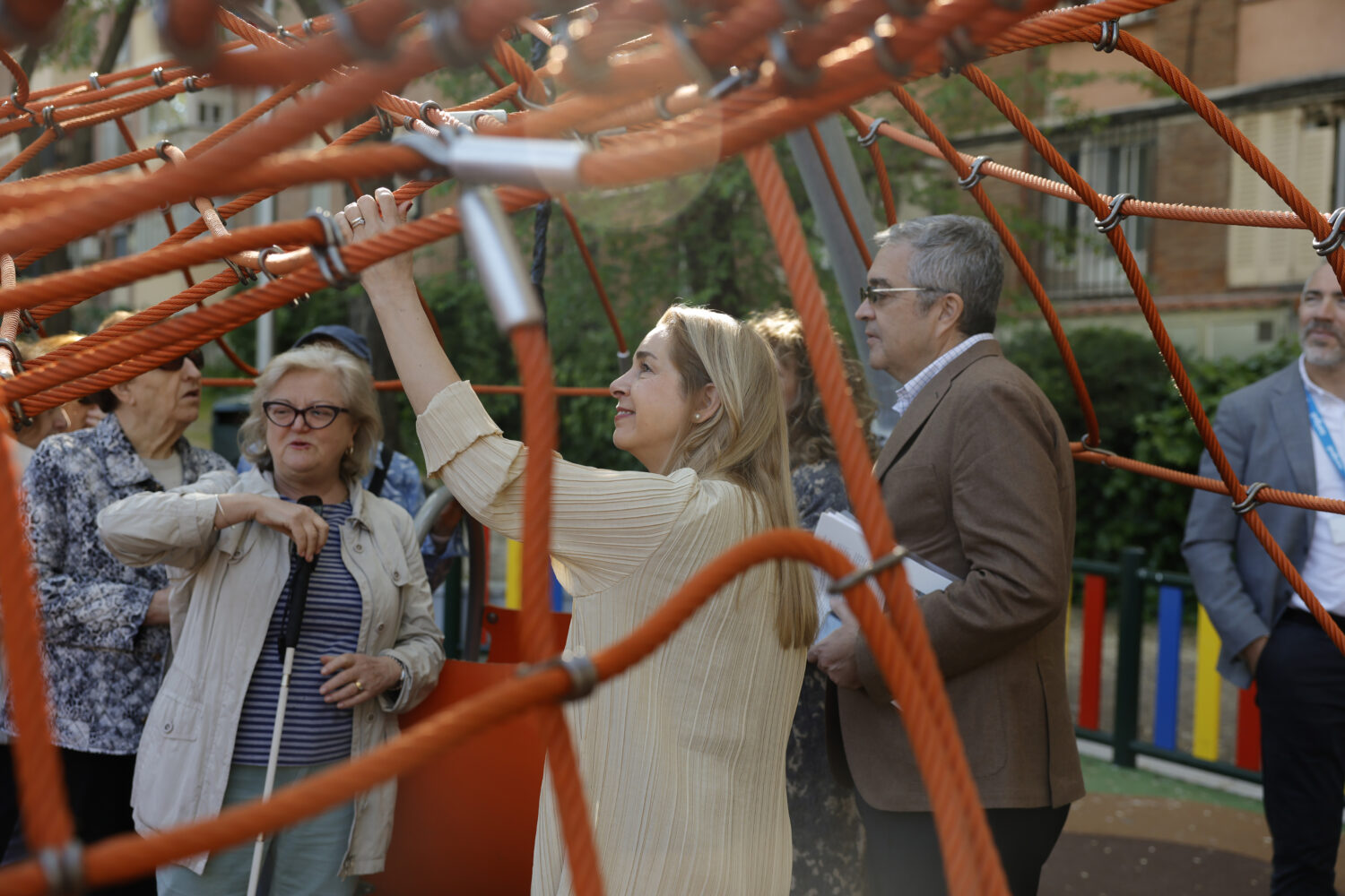 La concejala de Ciudad Lineal, Nadia Álvarez, junto a representantes de la Agencia de la ONCE del distrito, ha inaugurado las nuevas instalaciones de la zona verde situada en la avenida del Marqués de Corbera, 64. La actuación, que ha contado con un presupuesto de 550.000 euros, ha supuesto la regeneración de un espacio de 2.170 m² ubicado sobre la cubierta plana del aparcamiento para residentes.