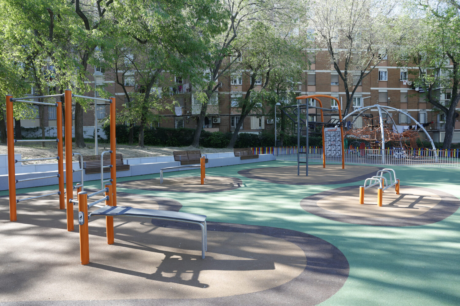 El proyecto ha permitido transformar un espacio que se encontraba infrautilizado en una nueva zona estancial y de actividad al aire libre. Para ello, se han incorporado nuevos elementos de mobiliario urbano y se han mejorado las condiciones de accesibilidad, iluminación y acondicionamiento paisajístico, con el objetivo de favorecer su uso cotidiano y reforzar la seguridad y el atractivo del entorno. El espacio cuenta ahora con equipamiento de entrenamiento deportivo al aire libre, con bancos para abdominales, barras paralelas y barras para flexiones.