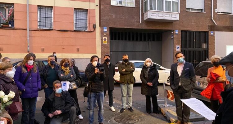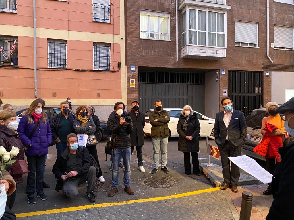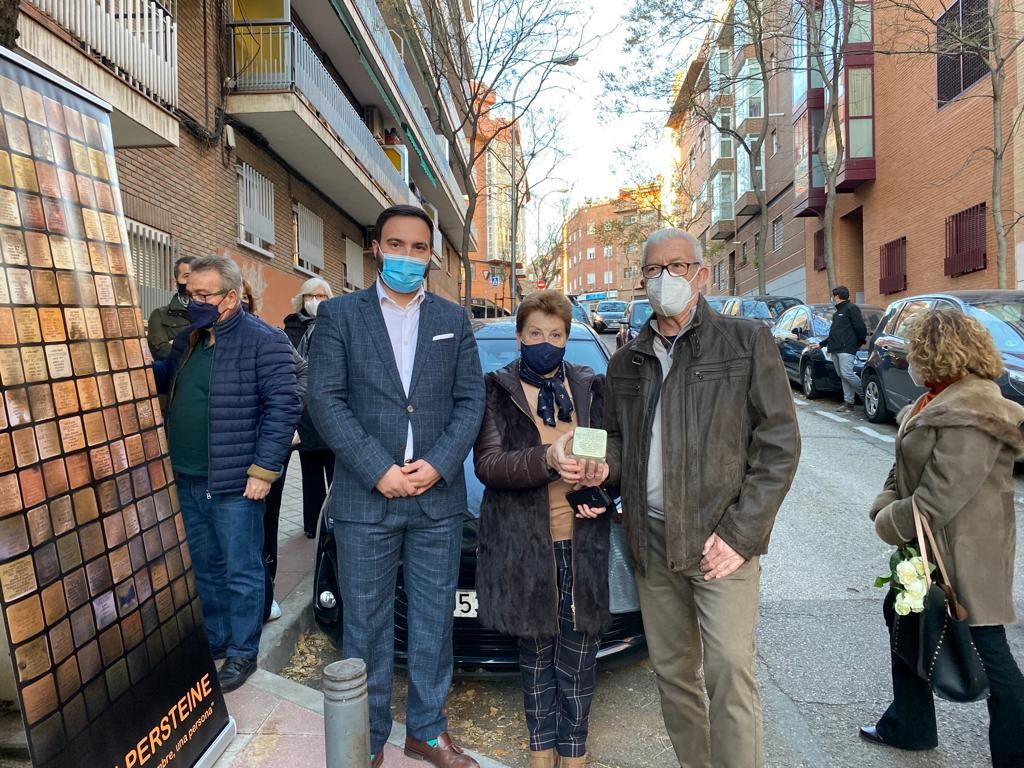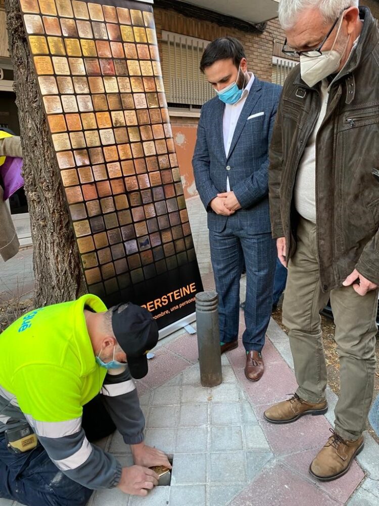 El concejal de Ciudad Lineal, Ángel Niño, ha asistido hoy a la colocación de dos stolpersteine, adoquines metálicos en homenaje a personas que fueron deportadas a campos de concentración alemanes que se incrustan en las aceras junto a los lugares en los que residieron.