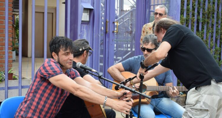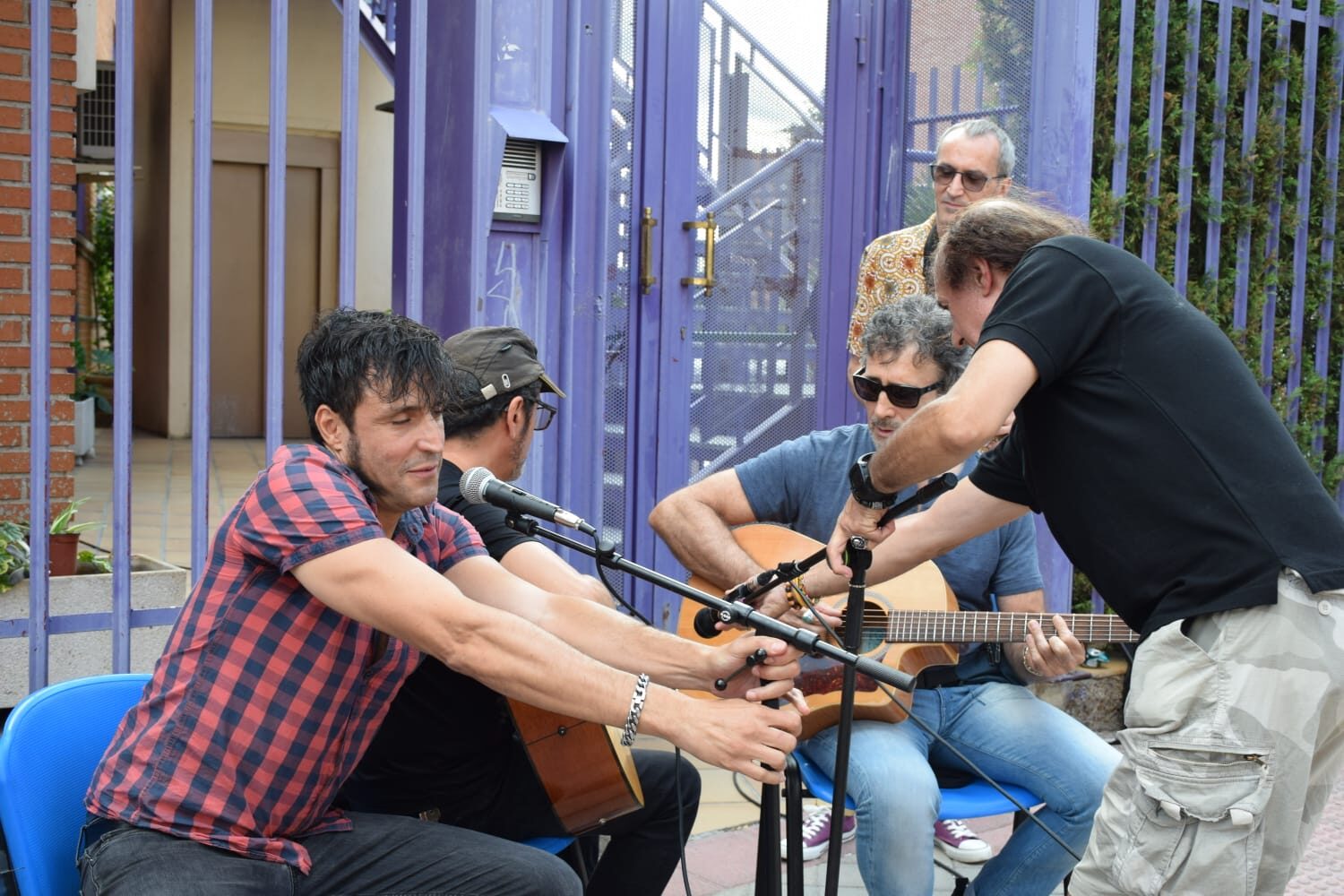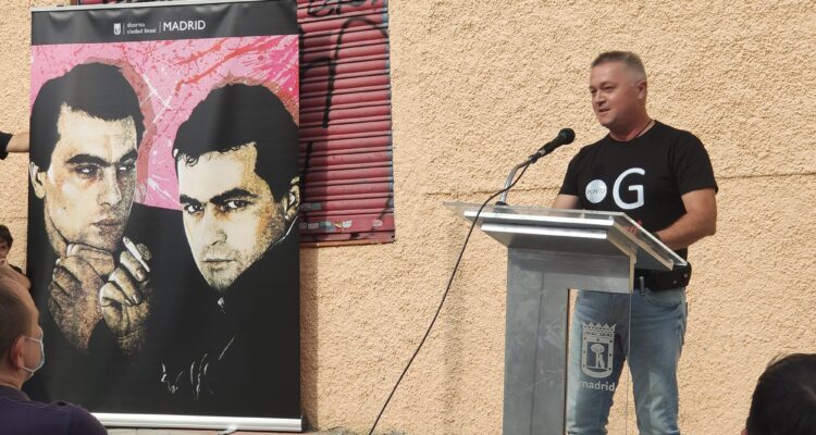 El concejal de Ciudad Lineal, Ángel Niño, acompañado del delegado del Área de Economía, Innovación y Empleo, Miguel Ángel Redondo, ha participado hoy en el descubrimiento de una placa conmemorativa en memoria de Antonio ‘Toño’ Martín y José Casas ‘Risi’, integrantes del grupo de rock Burning, para reconocer la trayectoria musical de esta banda vinculada al barrio de La Elipa. Esta distinción fue aprobada por unanimidad de los grupos políticos en el pleno de la junta municipal de marzo de 2019.