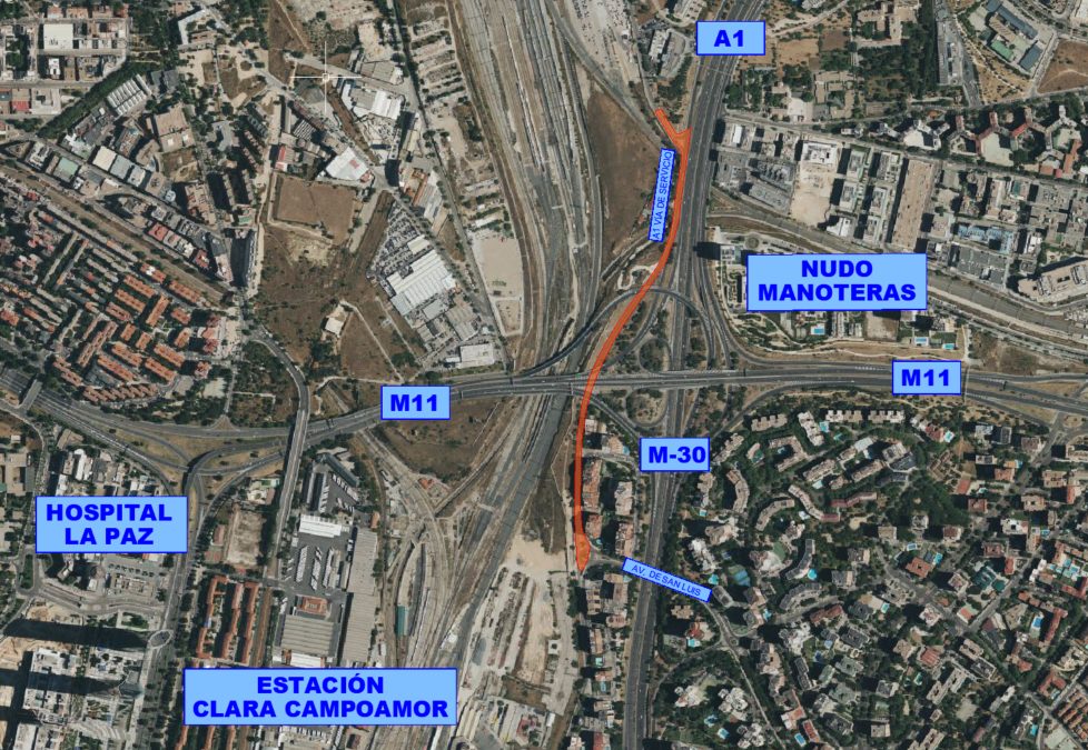 La zona de Las Tablas y Sanchinarro se ha convertido en los últimos años en un enclave con numerosos parques empresariales que se consolidan alrededor de la autovía de Burgos, una situación que provoca diariamente una importante congestión circulatoria de vehículos, no solo por los desplazamientos generados por los empleados sino por los residentes de la zona norte de Madrid. Concretamente, la vía de servicio en sentido salida de Madrid de la A-1 registra, según datos del Ayuntamiento de Madrid, una intensidad media de 28.000 vehículos al día. Con el objetivo de aliviar esta arteria, fomentar la movilidad sostenible y mejorar la velocidad del transporte público, el Ayuntamiento comenzó a finales de la semana pasada la construcción de un carril bus separado por barrera rígida en los 980 metros que discurren entre la glorieta de la avenida de San Luis hasta la intersección con la carretera de Fuencarral, en Las Tablas (lado oeste, sentido norte).