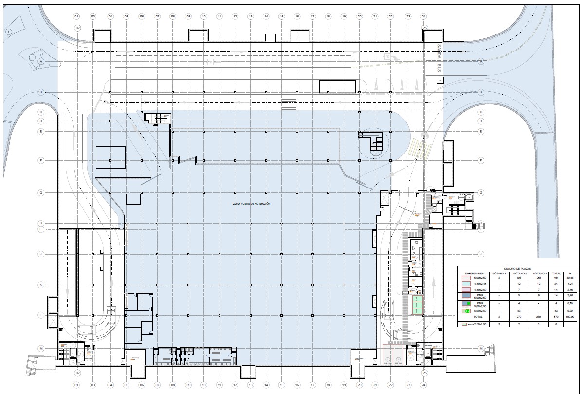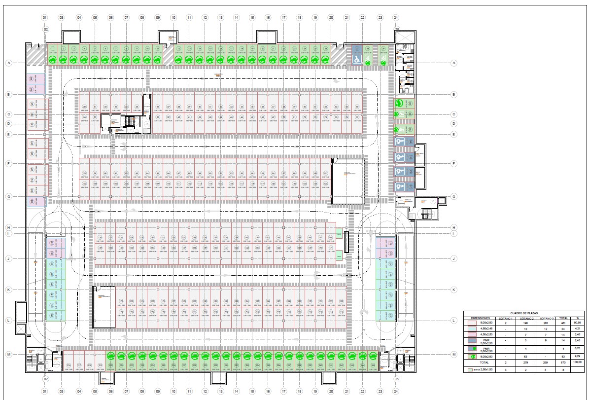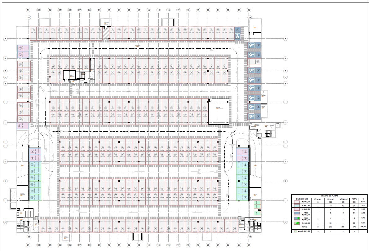 • Sótano segundo: 279 plazas para vehículos y dos para motocicletas.