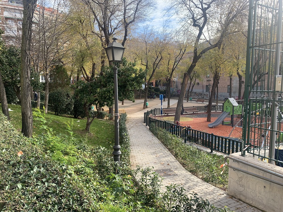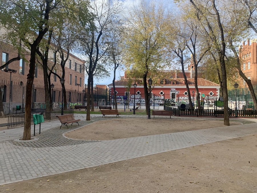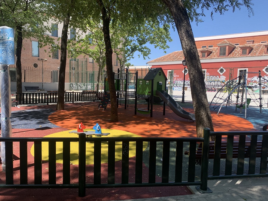 Además, se ha incorporado mobiliario para un circuito biosaludable destinado a personas mayores y una zona infantil, que cuenta con pavimento continuo de seguridad, donde se respetan los espesores específicos para cada juego, con un vallado perimetral. Por otro lado, hay una nueva ubicación para la instalación de la pista de petanca, también delimitada con el mismo tipo de vallado. Además, todas las instalaciones de los jardines de Conde Duque disponen de un recorrido accesible a la plataforma interior.