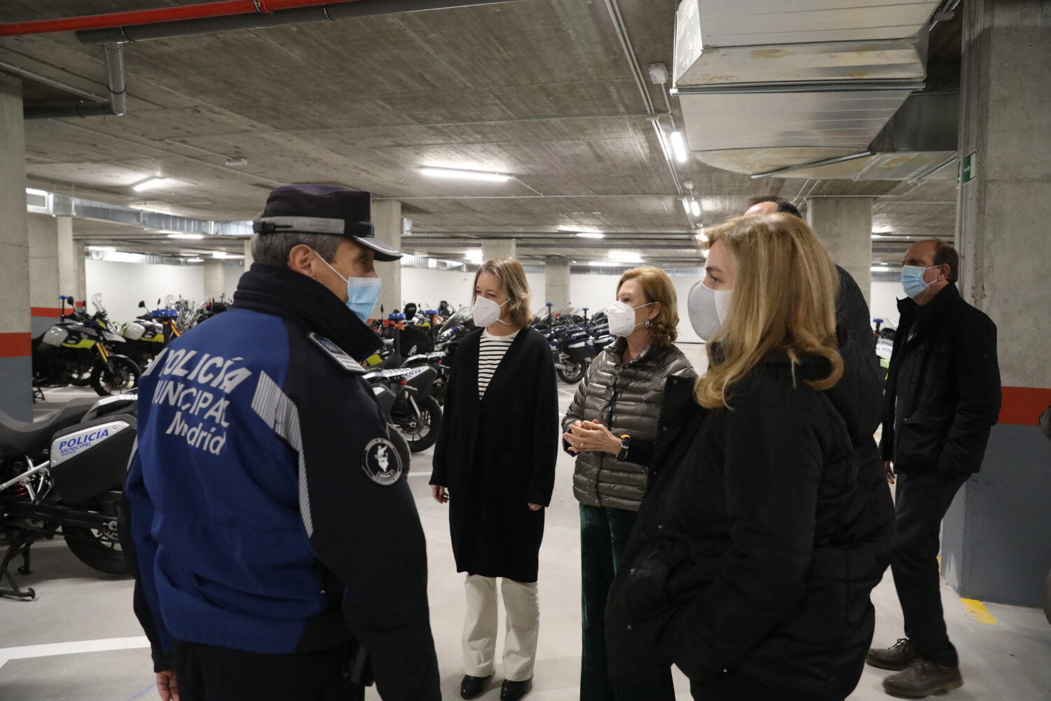 Las delegadas de Obras y Equipamientos, Paloma García Romero, y de Seguridad y Emergencias, Inmaculada Sanz, acompañadas de la concejala de Arganzuela, Cayetana Hernández de la Riva, han visitado esta mañana la Unidad Especial de Tráfico de la Policía Municipal, en la que acaban de finalizar los trabajos de reforma y ampliación de su aparcamiento.