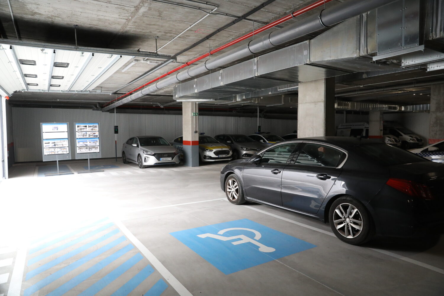 La remodelación, que ha supuesto una inversión de 3,7 millones de euros, ha sido ejecutada por el Área de Obras y Equipamientos y ha consistido en el soterramiento del aparcamiento. De este modo, se da lugar a dos niveles, uno bajo rasante y otro al aire libre, que permiten cuadruplicar el número de plazas, pasando a ser 228 (71 para vehículos y 157 para motos), además de contar con cargadores para vehículos eléctricos (tanto coches como motos). En total, el aparcamiento en sótano cuenta con una superficie de 2.800 m2, mientras que el que está en superficie tiene 1.650 m2.