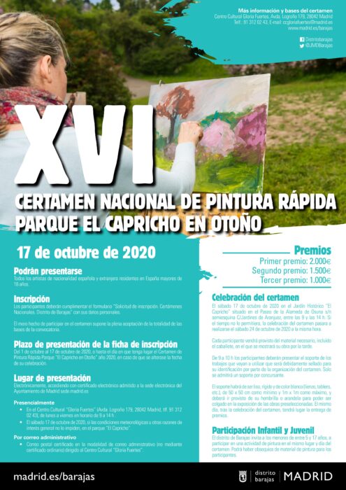 Toda la información sobre el XVI Certamen Nacional de Pintura Rápida Parque El Capricho en Otoño está disponible en www.madrid.es.