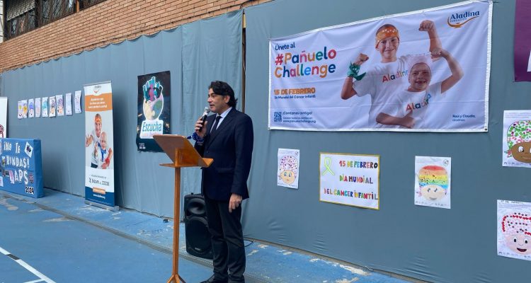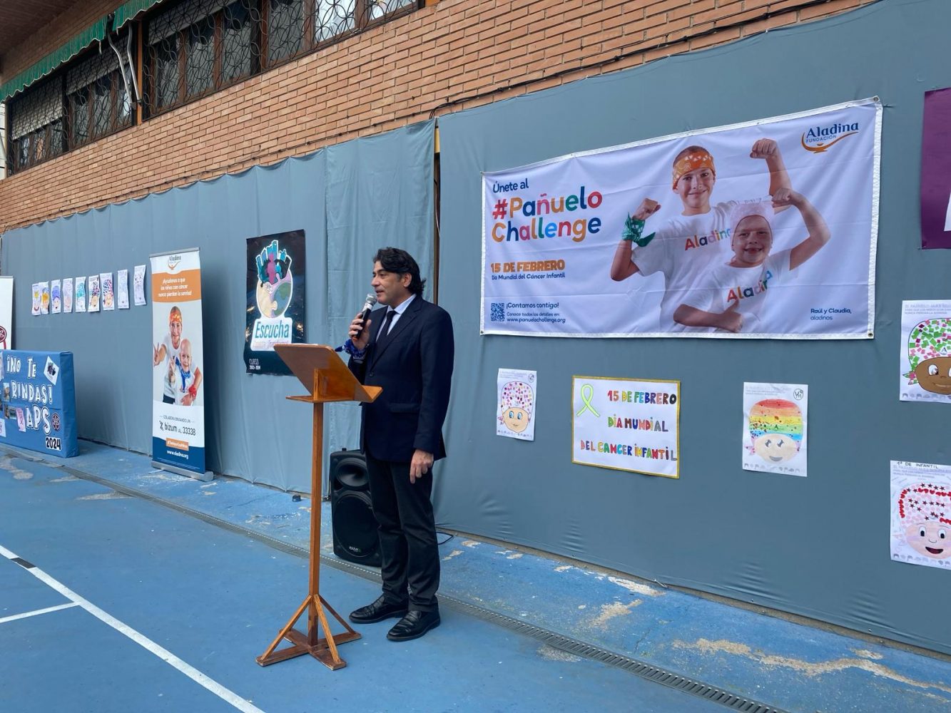 El concejal de Hortaleza, David Pérez, se ha sumado hoy a la iniciativa solidaria Pañuelo Challenge, promovida por la Fundación Aladina para visibilizar el Día Mundial del Cáncer Infantil e invitar a los escolares a colocarse un pañuelo en la cabeza como muestra de solidaridad y empatía con los pacientes infantiles ingresados en hospitales y que pierden el pelo como consecuencia de los tratamientos oncológicos. En el colegio Virgen de la Milagrosa, Pérez ha recordado “la necesidad de aumentar los recursos y la investigación en la lucha contra el cáncer, crucial para ayudar a los niños afectados y a sus familias”.
